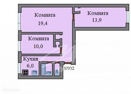 Жилая площадь 39.7 м2