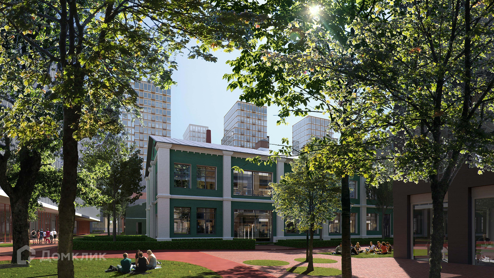 Под парковые зоны выделили 1,5 гектара площади квартала. Для жителей благоустроили зеленый лабиринт, скверы, аллеи, французский парк с боскетами и два сада. Зеленый ландшафт дополняет сад на крыше спортивного центра.
