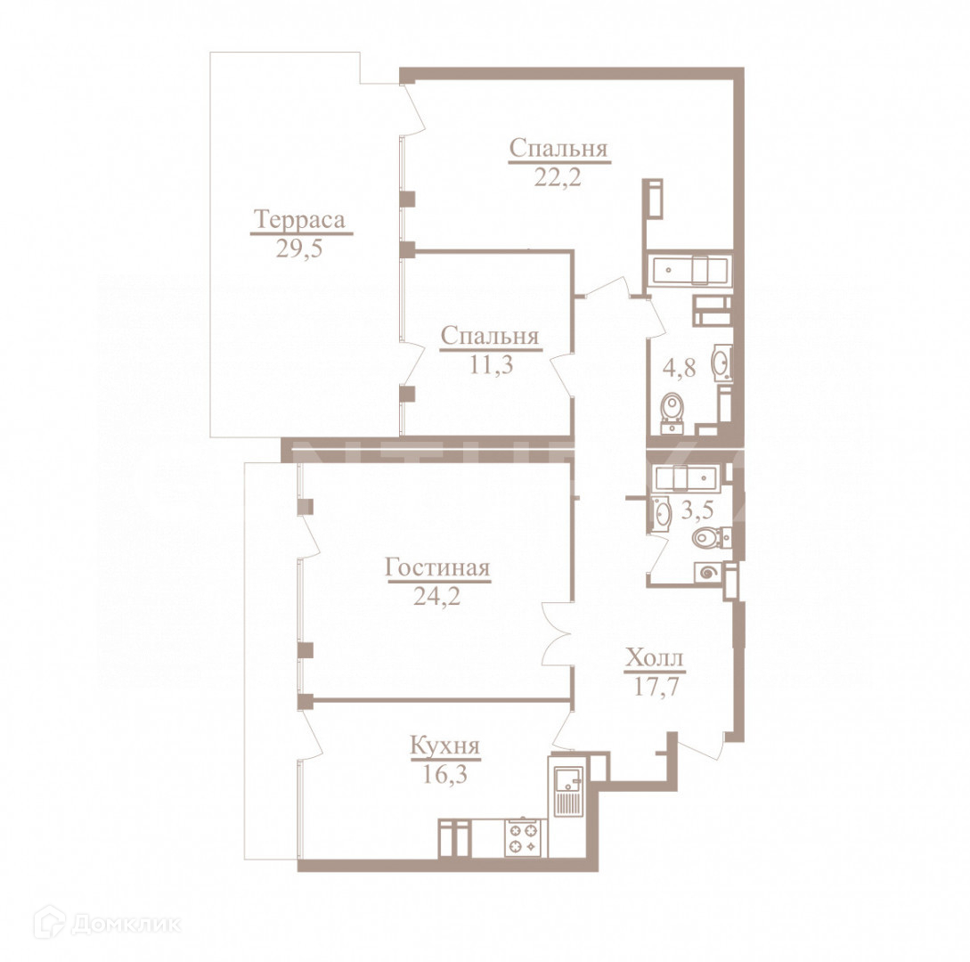 • Два санузла и дополнительное помещение, которое можно использовать как прачечную или кладовую;