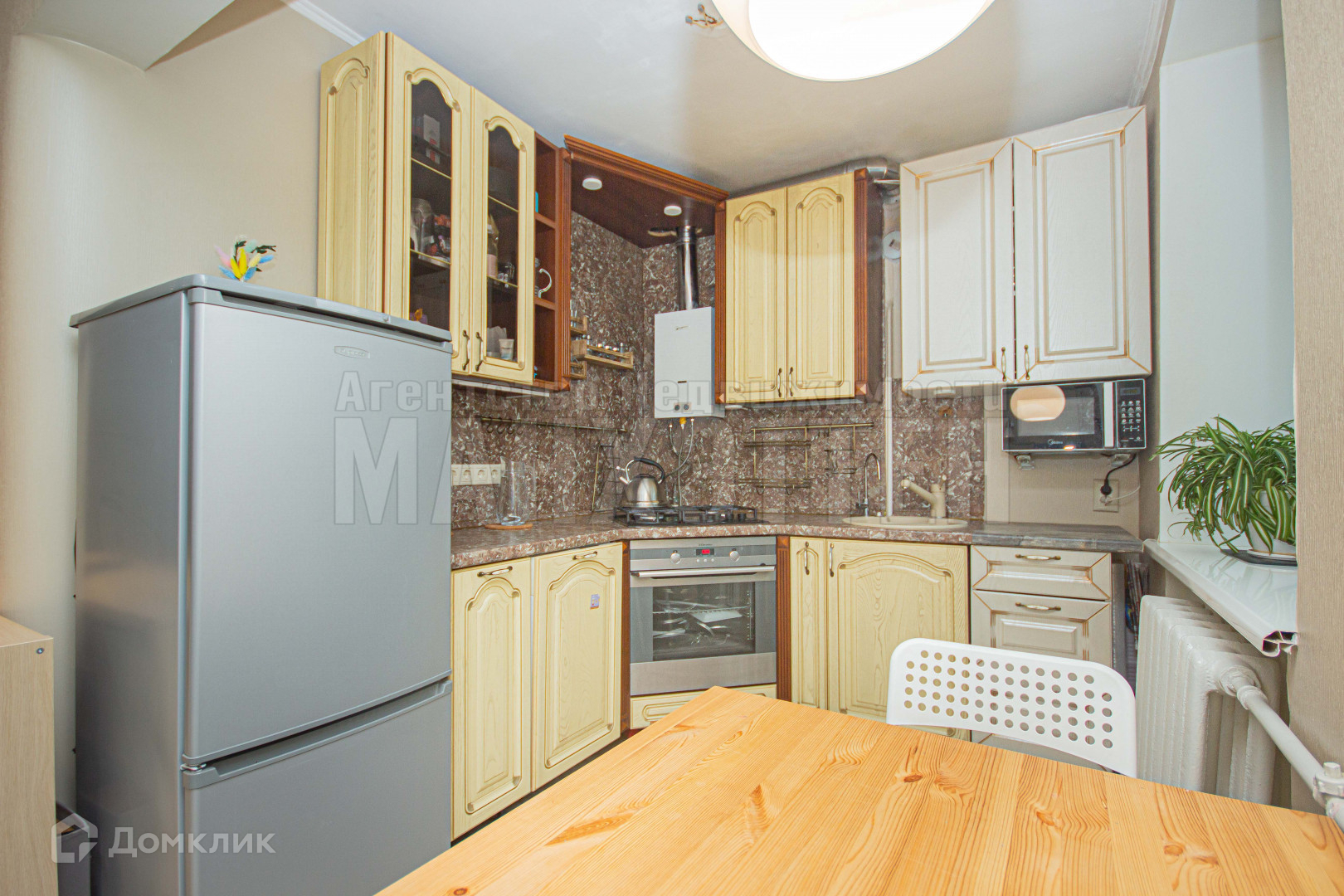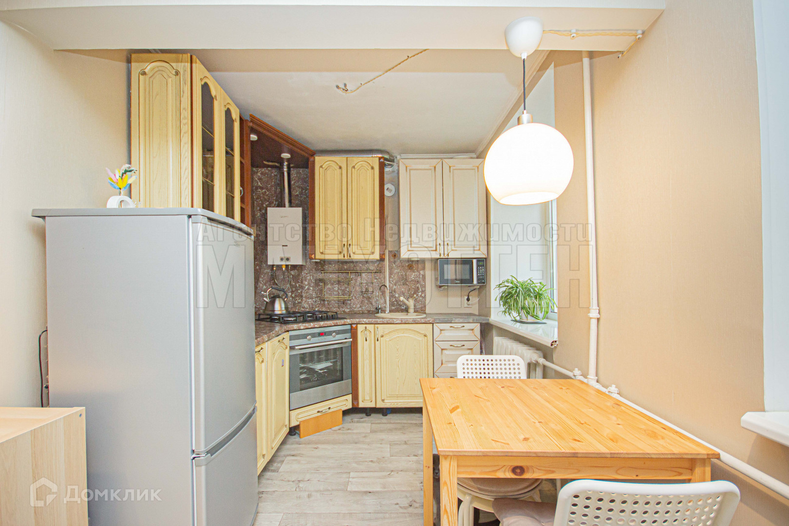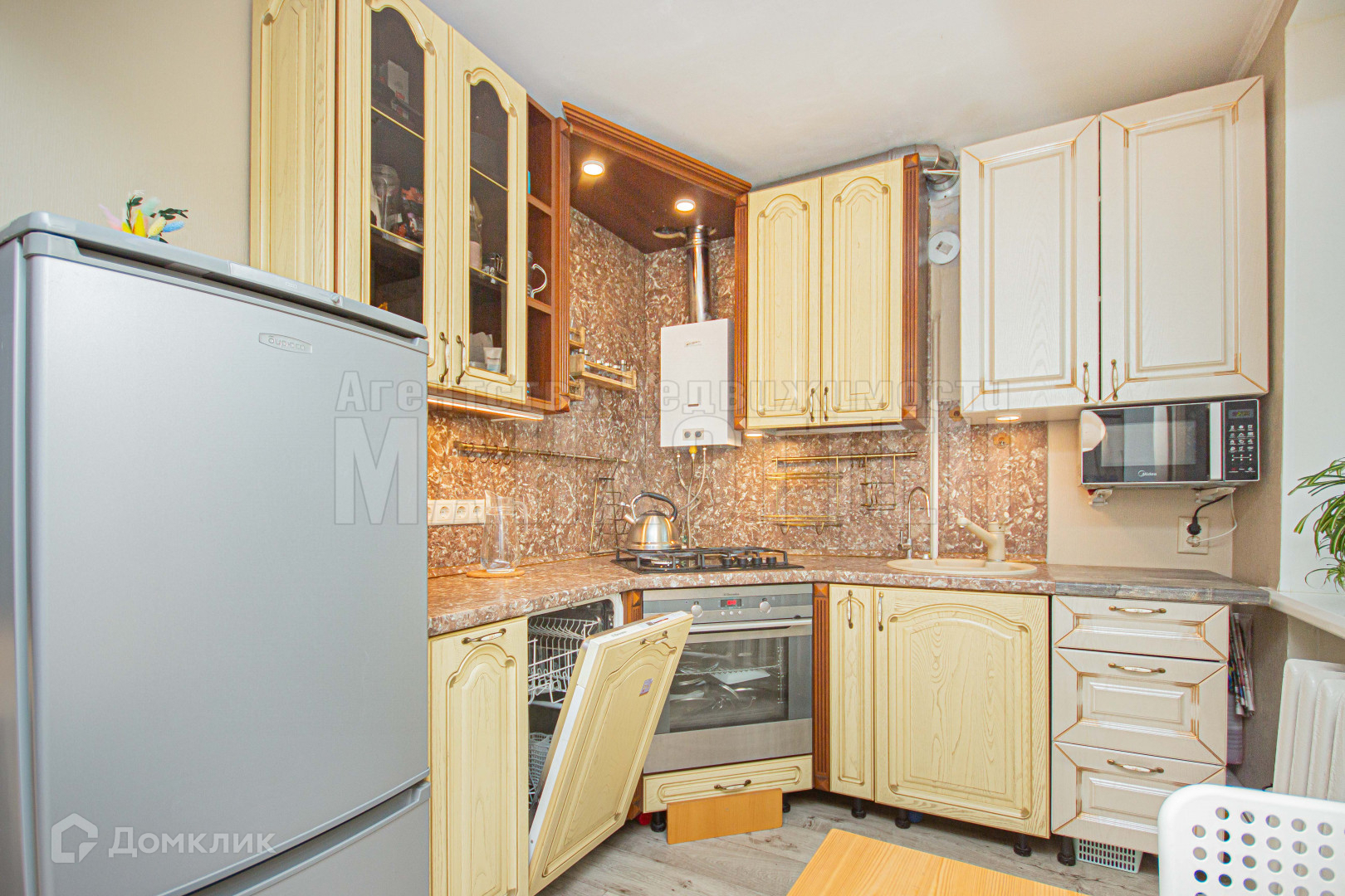 После продажи остается частично мебель, плита, духовка и кухонный гарнитур.