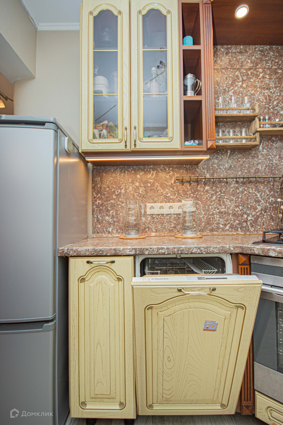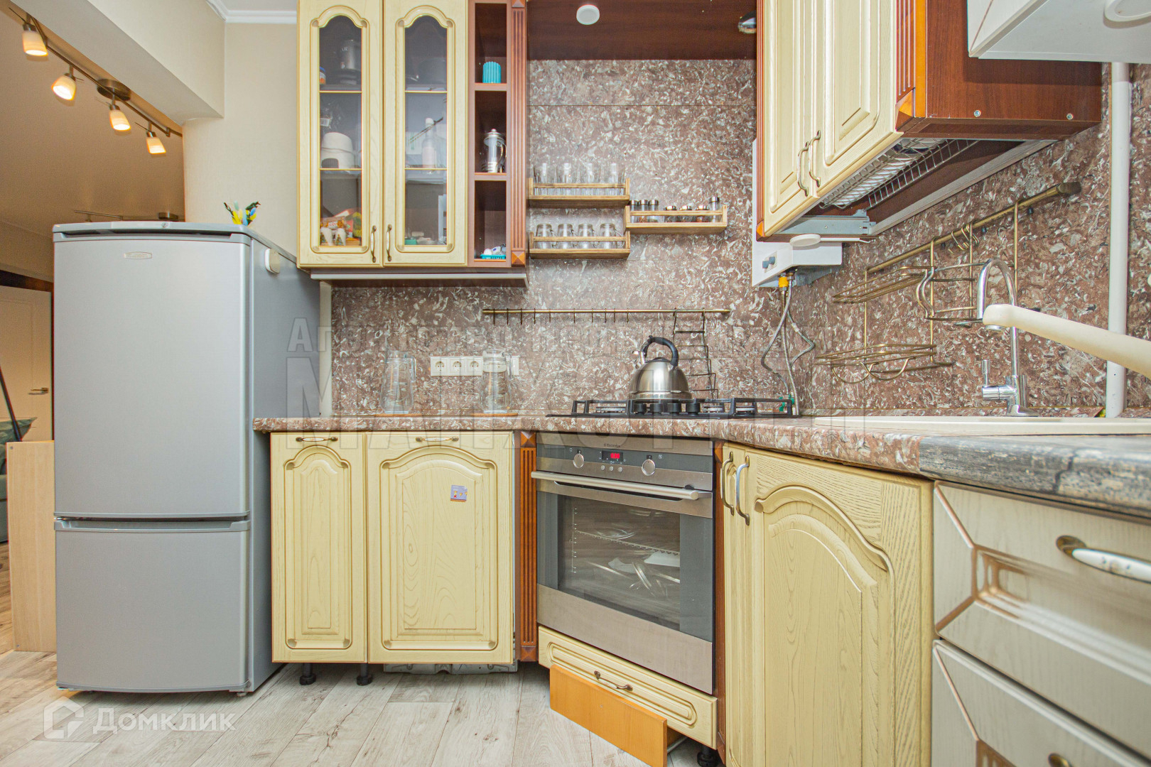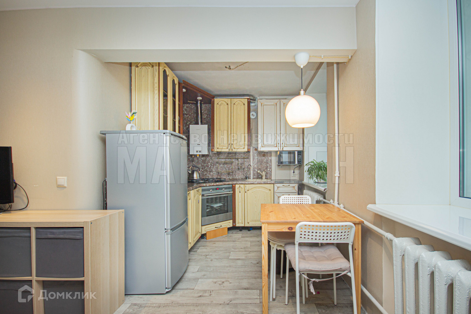 После продажи остается частично мебель, плита, духовка и кухонный гарнитур.