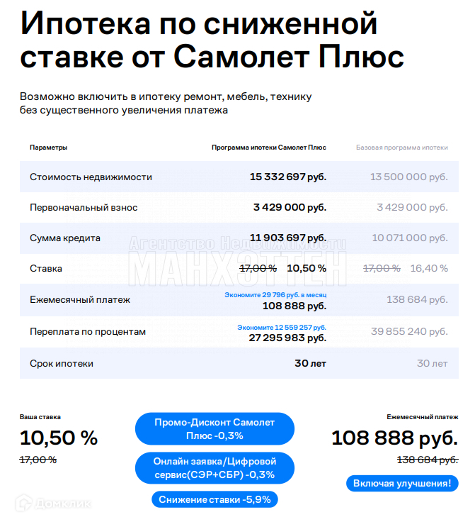 Арт. 64848901 Данный объект можно купить по субсидированной процентной ставке от 10,5%, что существенно снизит ежемесячный платеж по ипотеке!!! Расчет прилагается на последнем фото.
