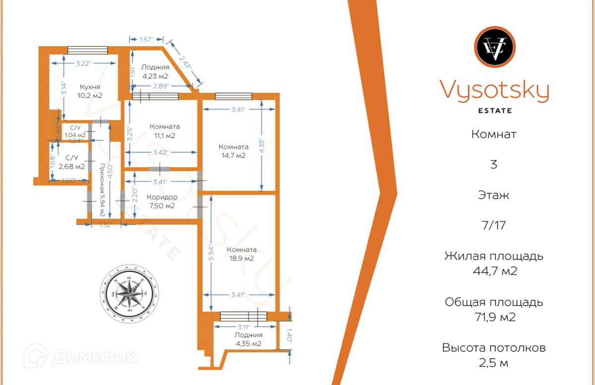 Общая площадь 71.9 м2