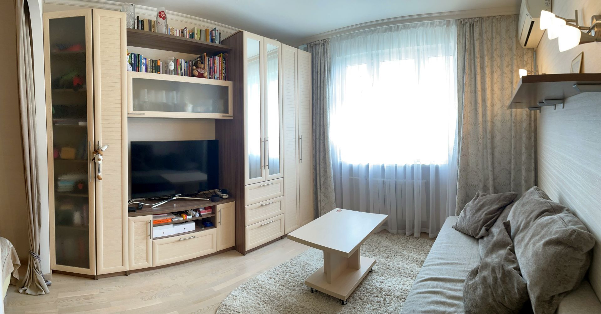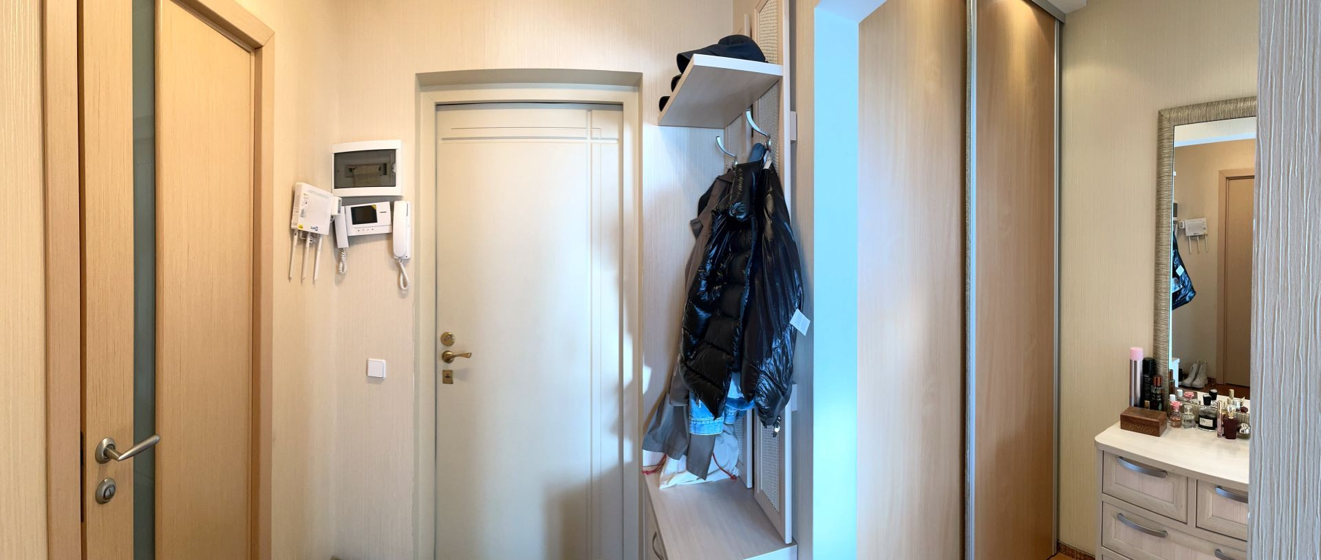 В 2013 году была выполнена качественная внутренняя отделка: грамотно проложена вся инженерия, стены выровнены, обои выполнены в нейтральных тонах, уложен ламинат и плитка, установлен кондиционер, стоят 2-х камерные стеклопакеты, хорошие межкомнатные двери, качественная сантехника, современные биметаллические радиаторы, обустроены теплые полы, заведен оптико-волоконный интернет, потолки 2,66 м. Перепланировок нет. На лестничной площадке 4 квартиры, холл закрывается. Чистый ухоженный подъезд, консьержка, 3 лифта (2пас+1груз). Разумные коммунальные расходы.