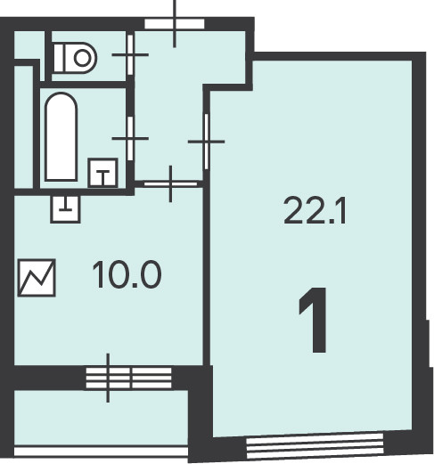 Жилая площадь 22.1 м2