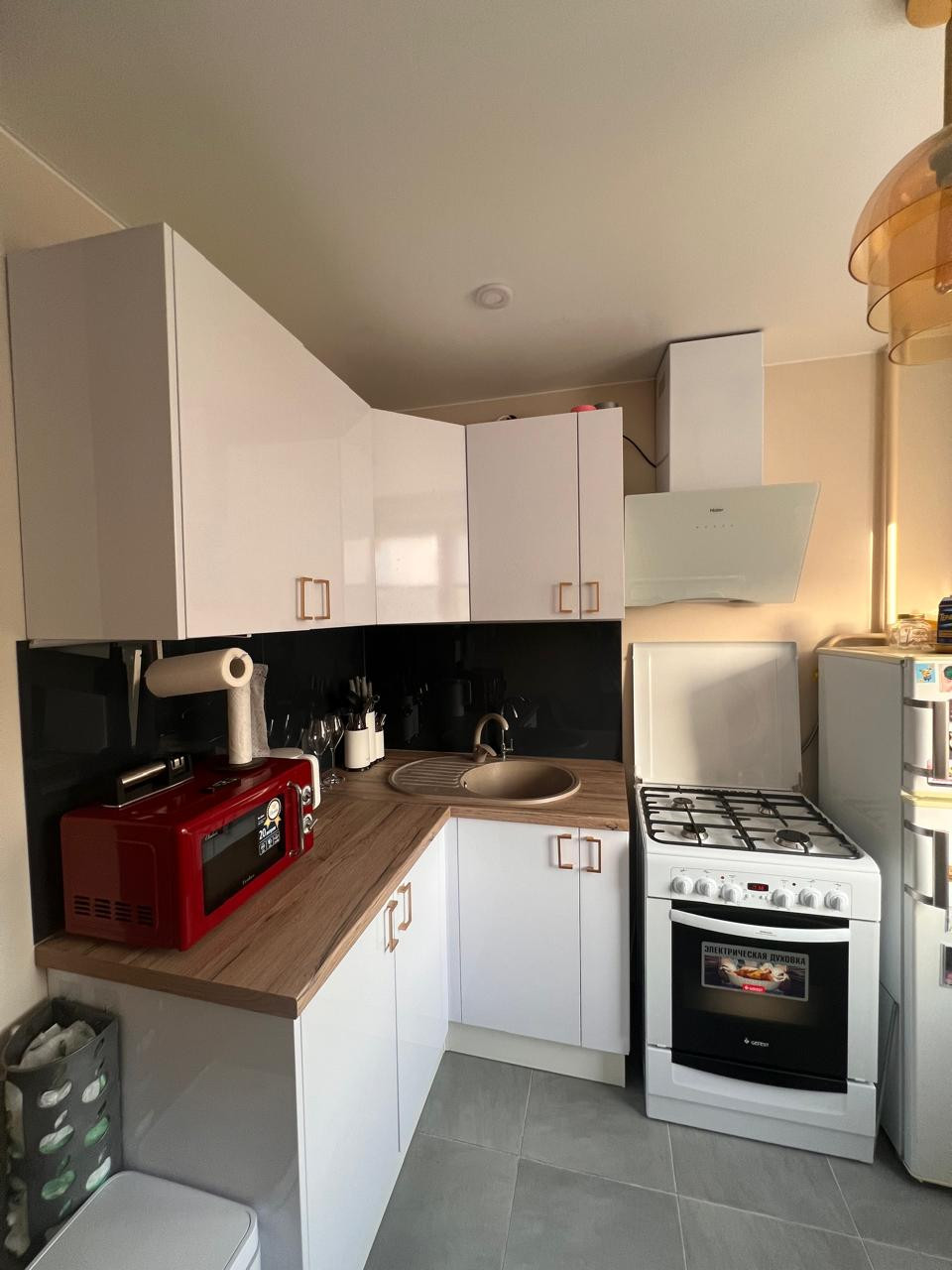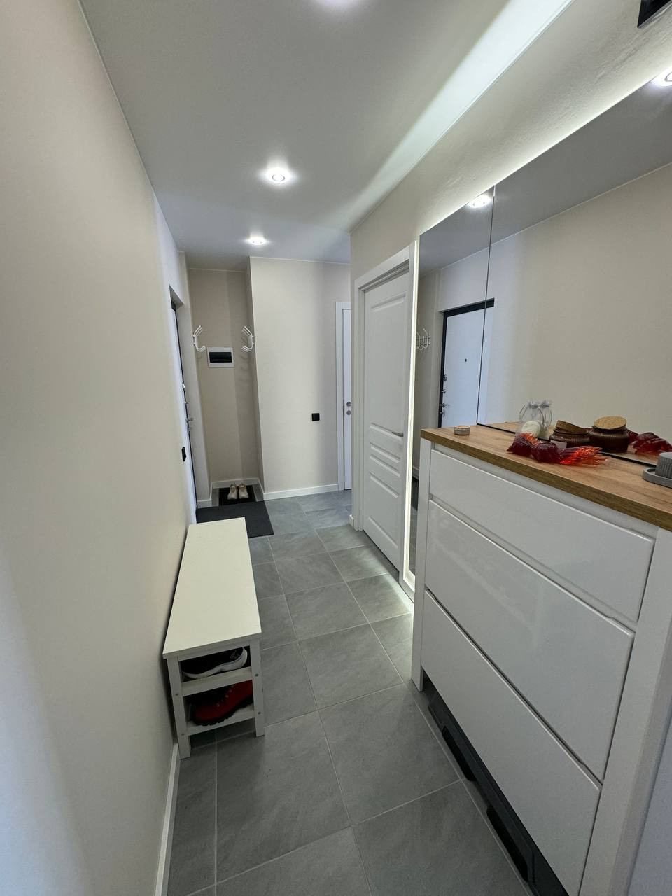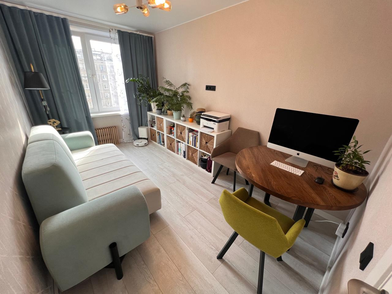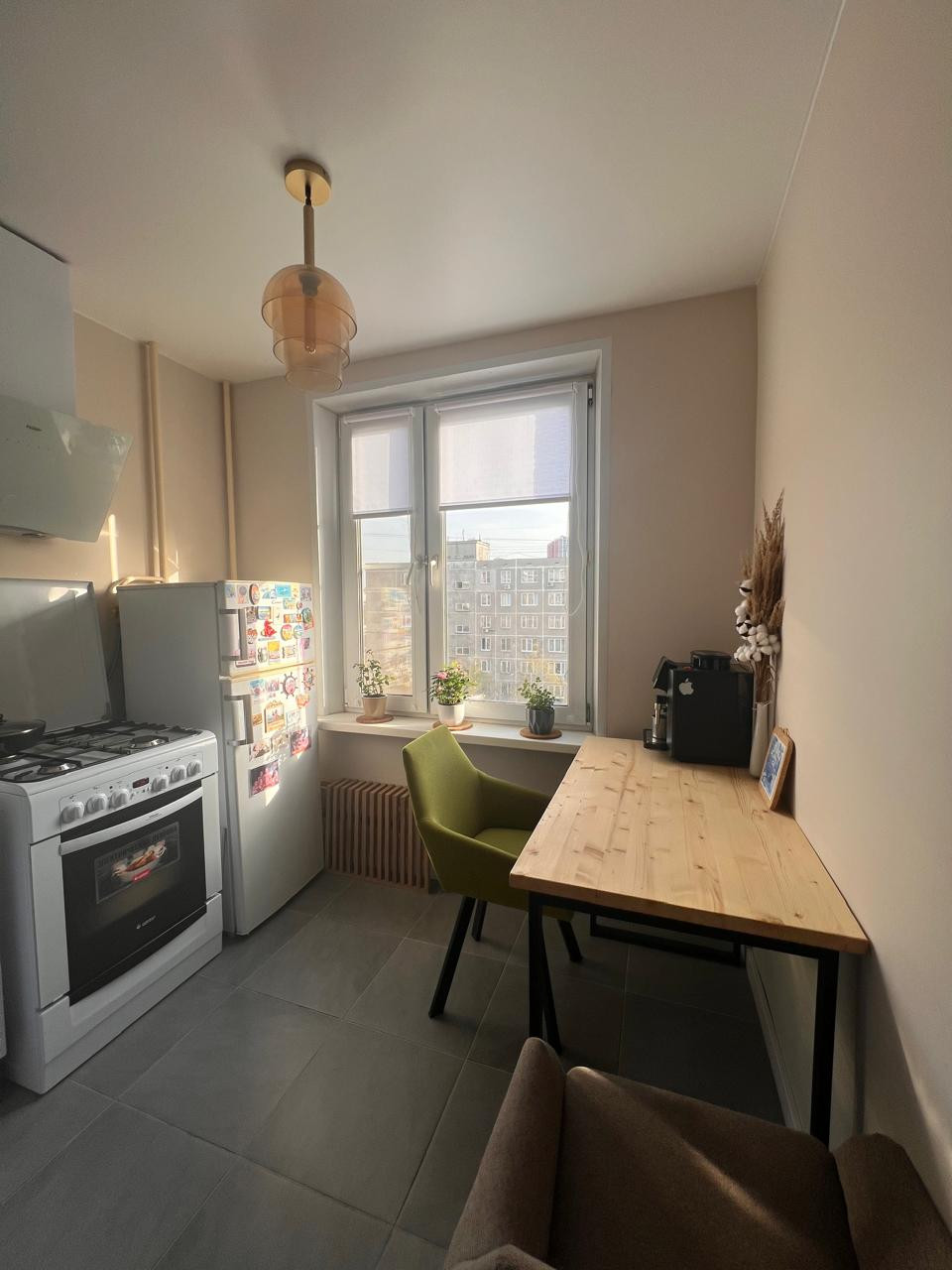 Ремонт сделан в марте 2024 года с использованием качественных стройматериалов. Новая проводка, электрика, канализация. Современная и стильная техника на кухне и в ванной комнате. Натяжные потолки. Пол с шумоизоляционными материалами. Дорогая дверь с матовой поверхностью отлично изолируют звук.