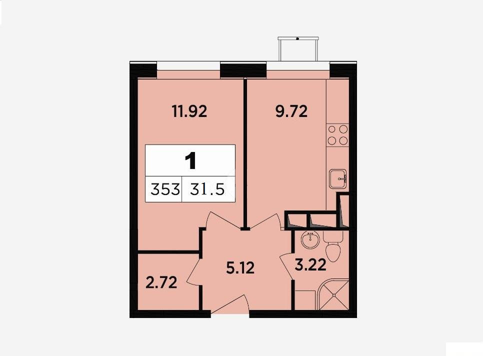Общая площадь 31.5 м2
