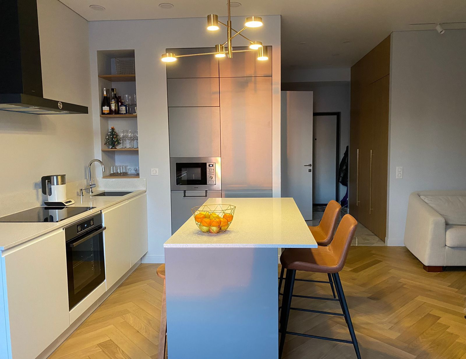 ЖК «Крылья» продается ВИДОВАЯ евродвушка с дизайнерским ремонтом. В квартире использованы дорогие качественные материалы, уютная кухня-гостиная с островом, встроенные шкафы, совмещенный с/у с теплыми полами, паркетная доска в кухне-гостиной и спальне. Очень удобная планировка, также, большой плюс наличие в квартире отдельной гардеробной и постирочной зоны.