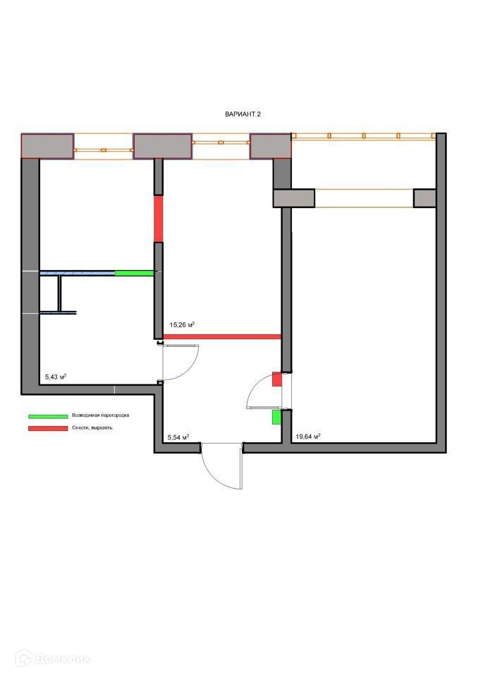 Общая площадь 43 м2