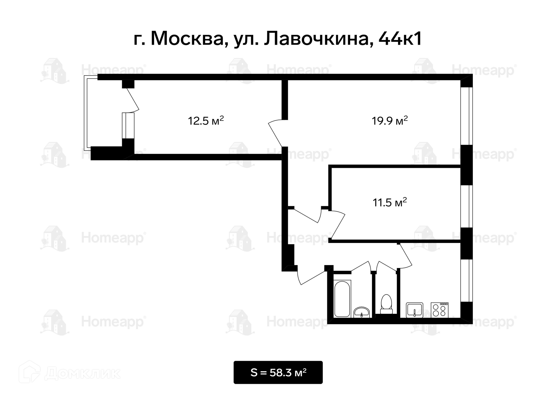 3-комнатная квартира, 57.3 м2, этаж 8 / 9, на продажу в Москве, улица Лавочкина, 44к1