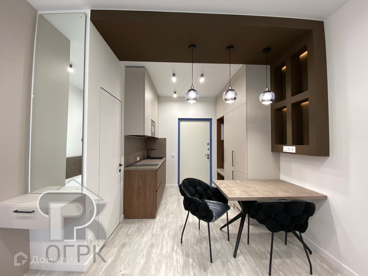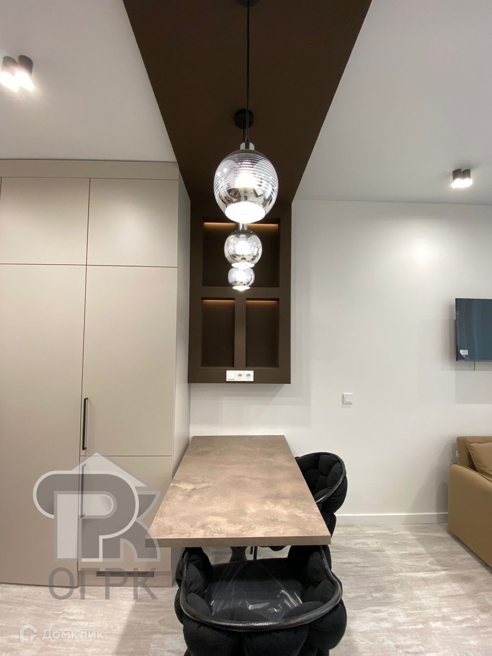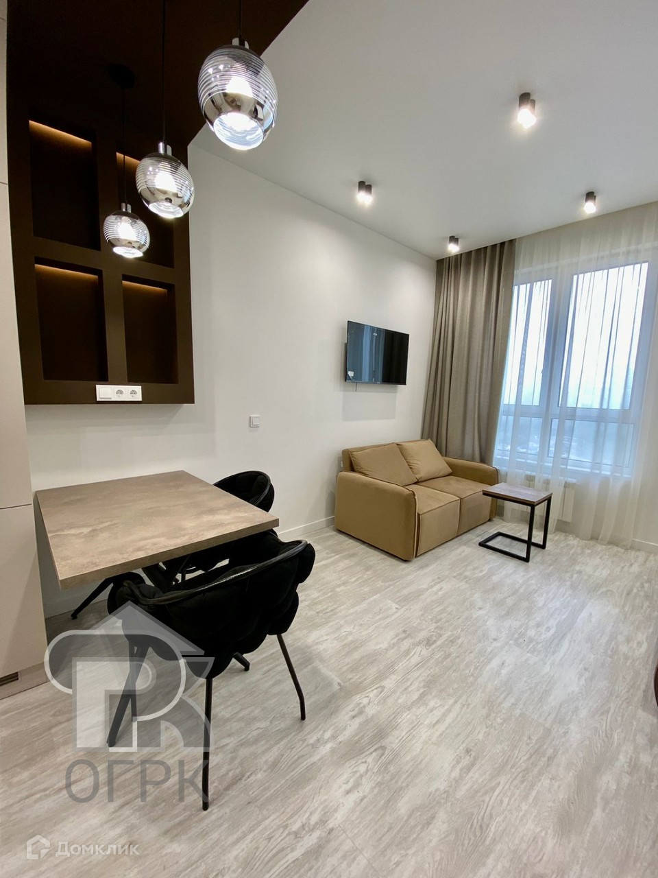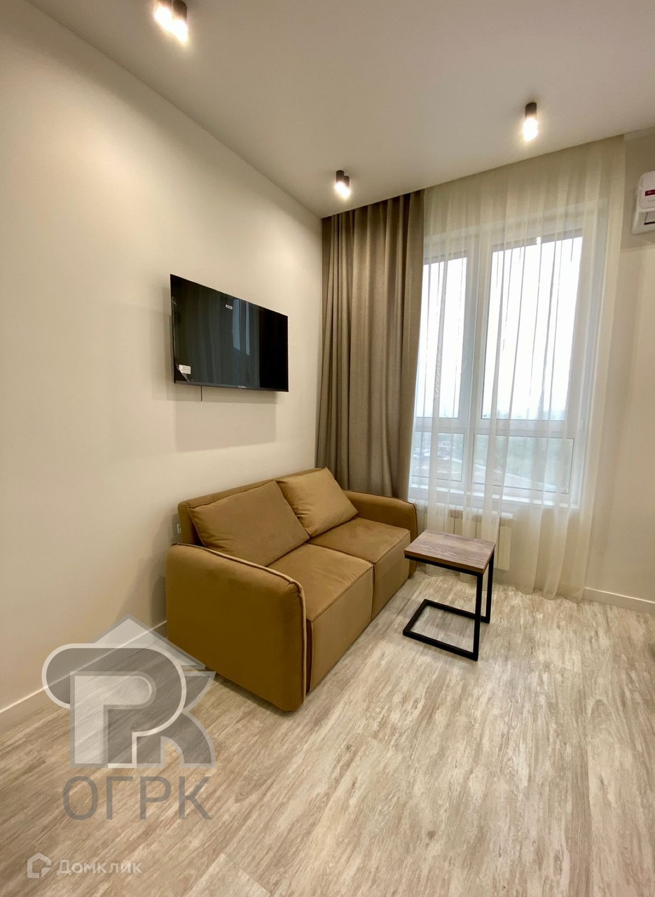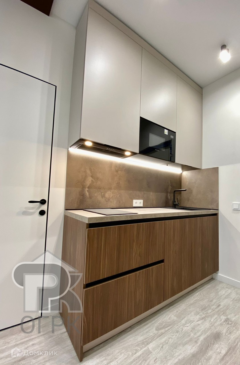 Выполнен дорогой ремонт. Квартира прекрасно зонирована, кухня-гостиная, спальня и просторная лоджия. Из спальни не видно кухни. Квартира продается с мебелью и техникой. Много места для хранения вещей.