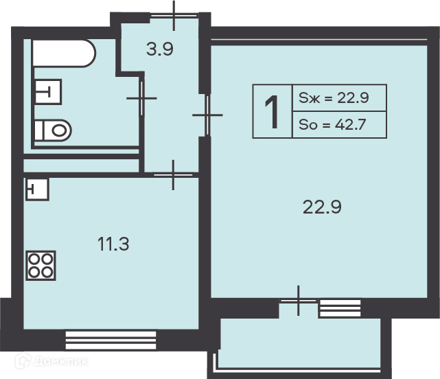 Общая площадь 42.7 м2