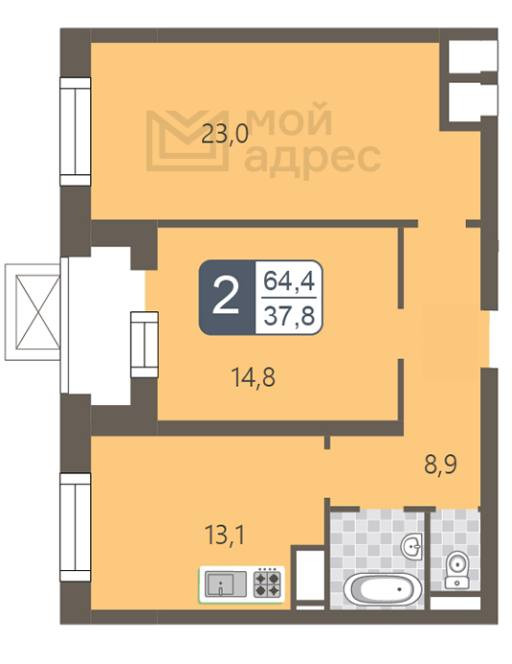 Общая площадь 64.4 м2