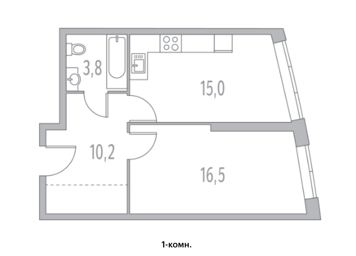 Жилая площадь 16.5 м2