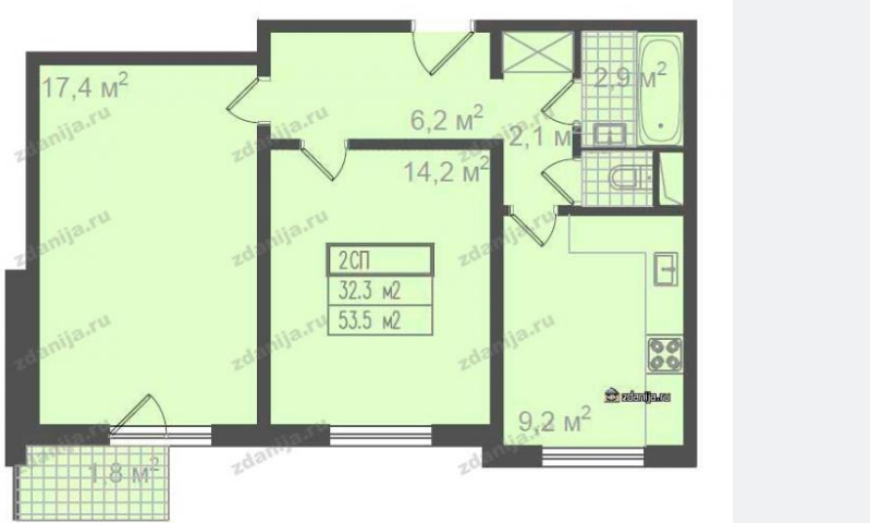 Общая площадь 53 м2