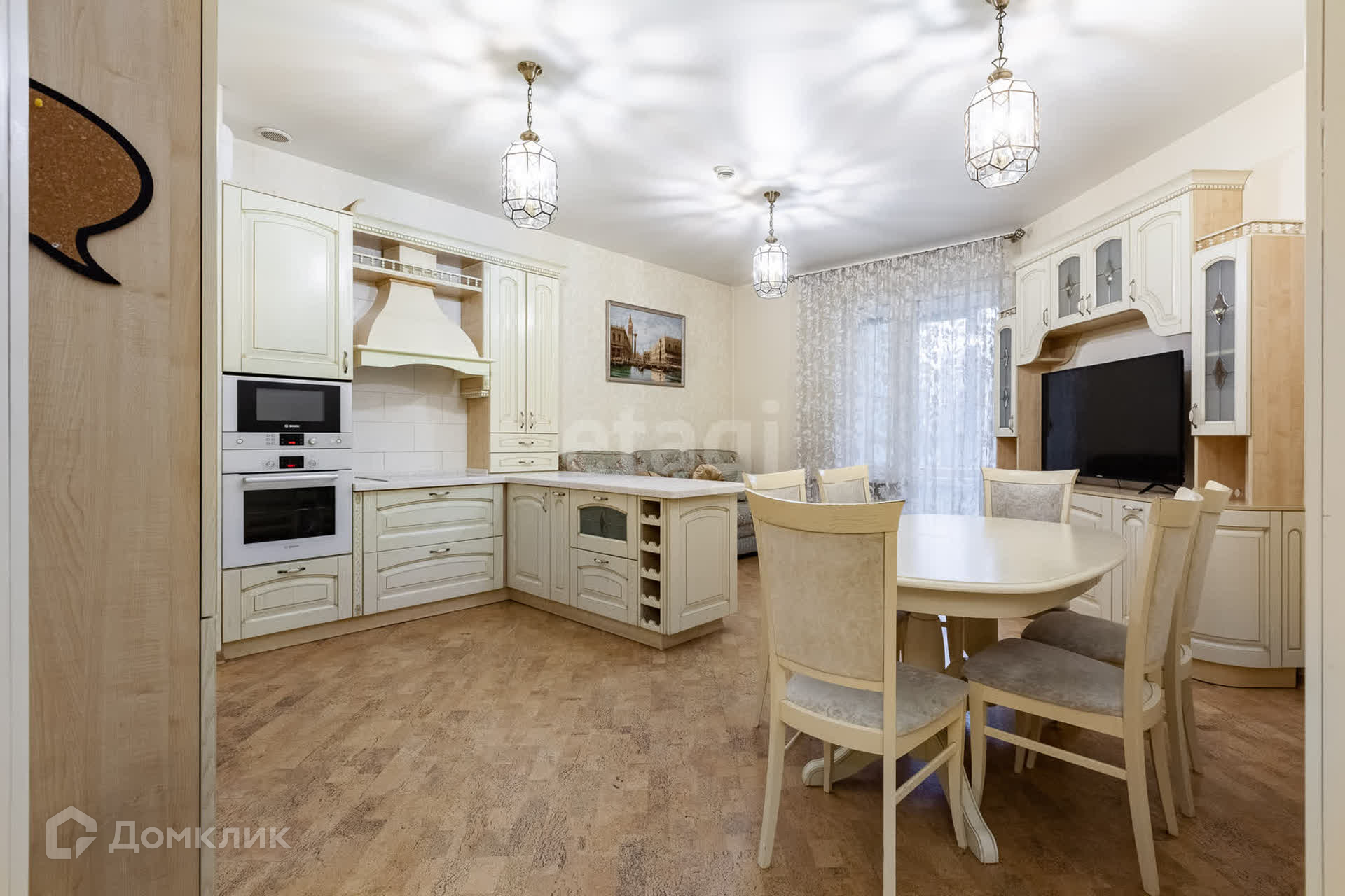 В квартире выполнен современный ремонт, сделана отличная шумоизоляция. Высота потолков 3,10 метра. Два санузла. Есть постирочная. Три отдельные комнаты и большая кухня-гостиная. Все, что есть на фото, остается при продаже.