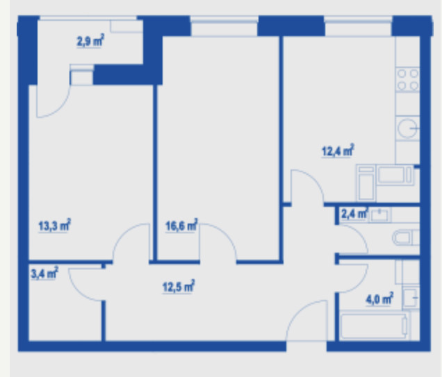Площадь кухни 12.4 м2