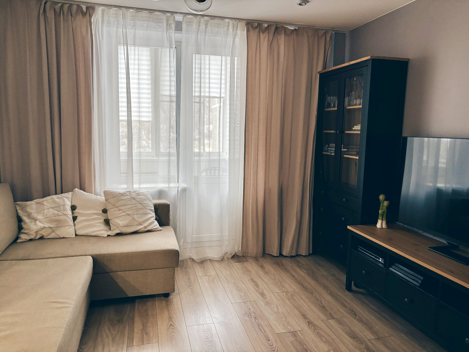 Уютная двухкомнатная квартира с большой застекленной лоджией.