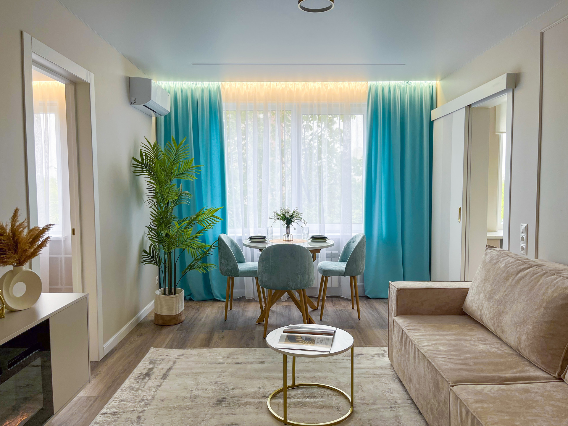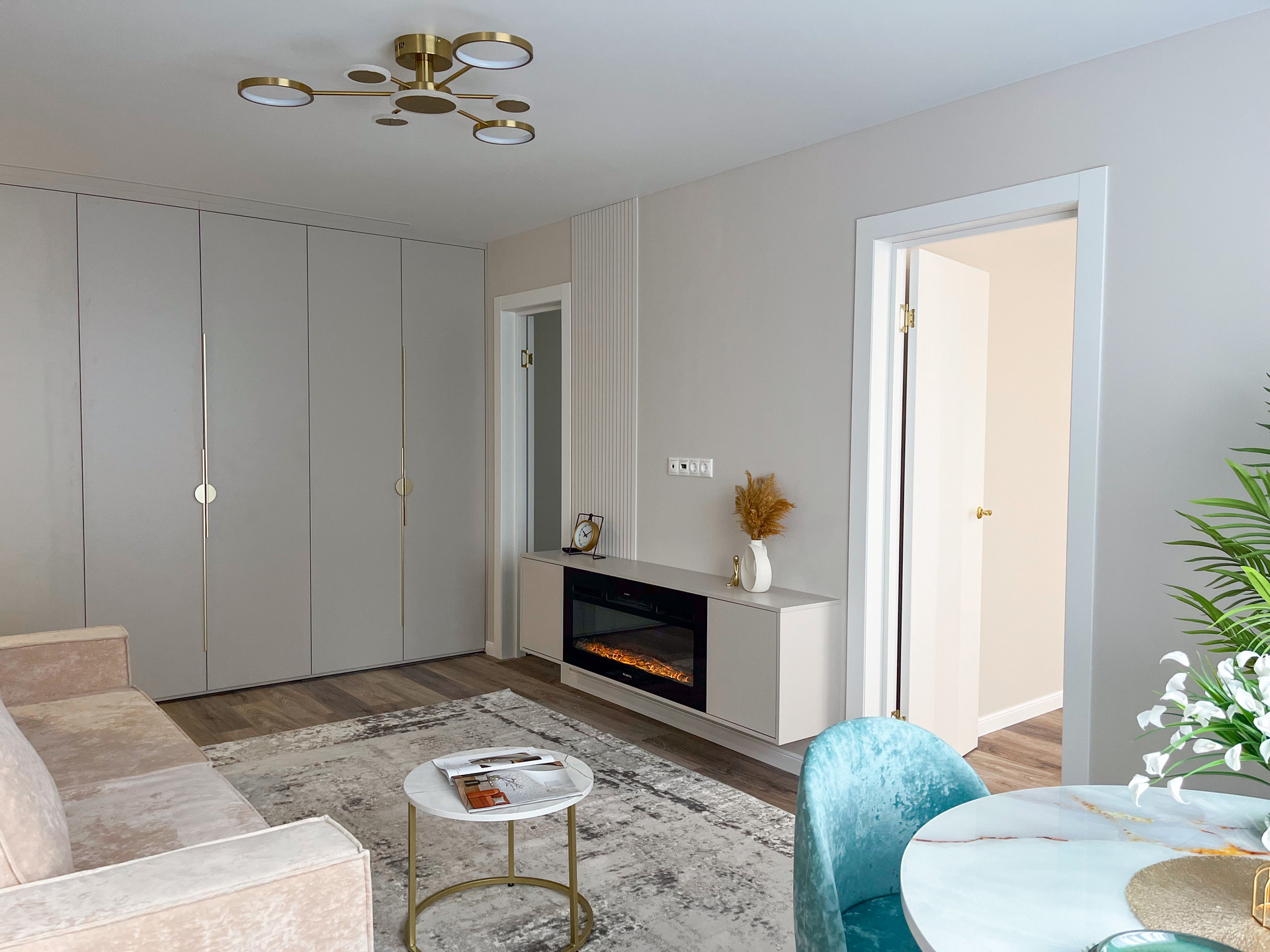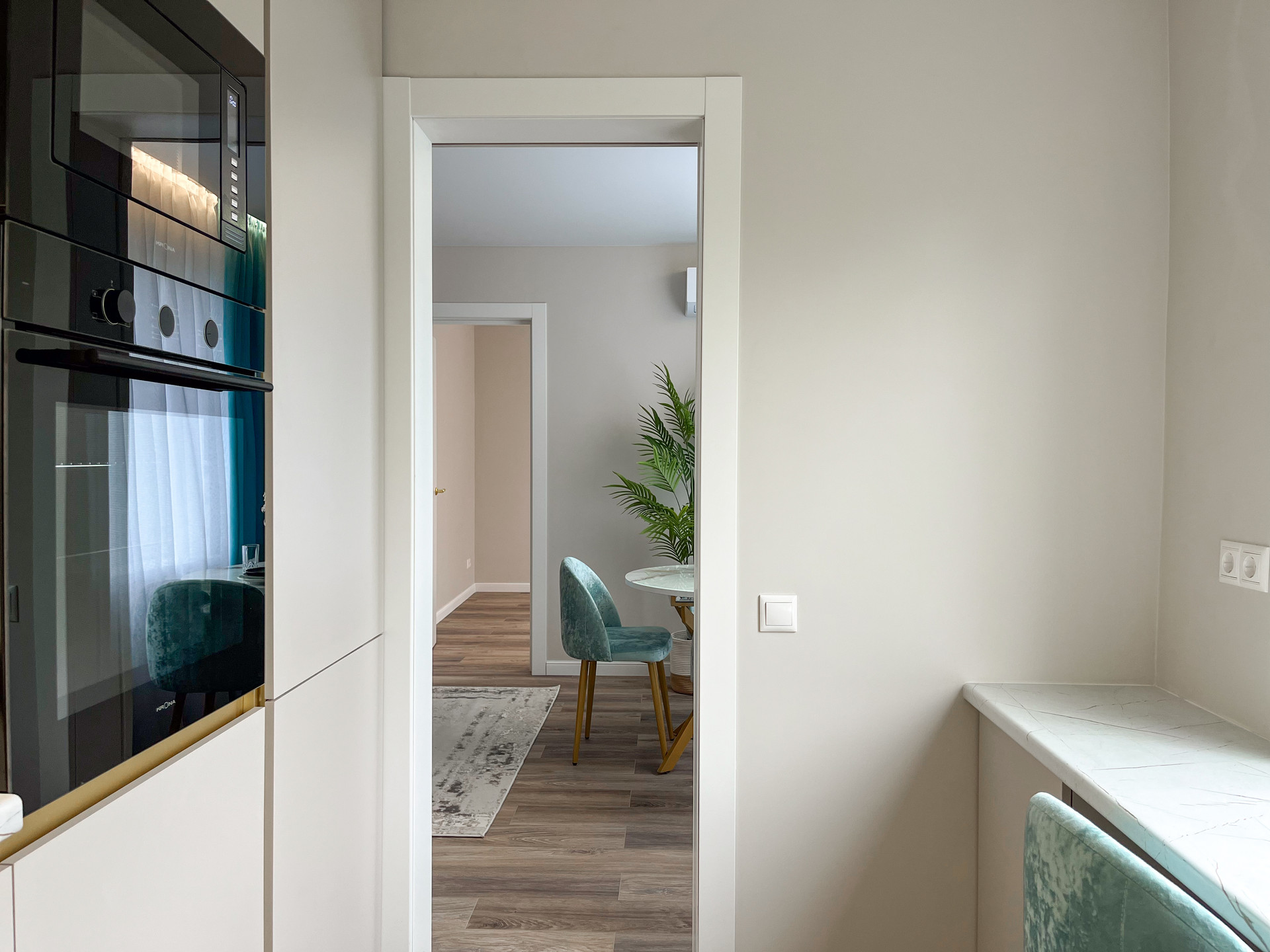 Вся мебель и техника остаются! 2 кондиционера, посудомойка, стиралка с функцией сушки, встроенный холодильник, микроволновка, духовой шкаф, электрический камин.