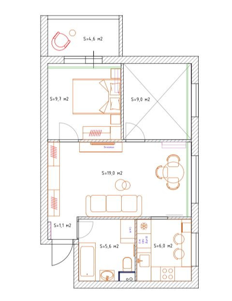 Общая площадь 49.5 м2