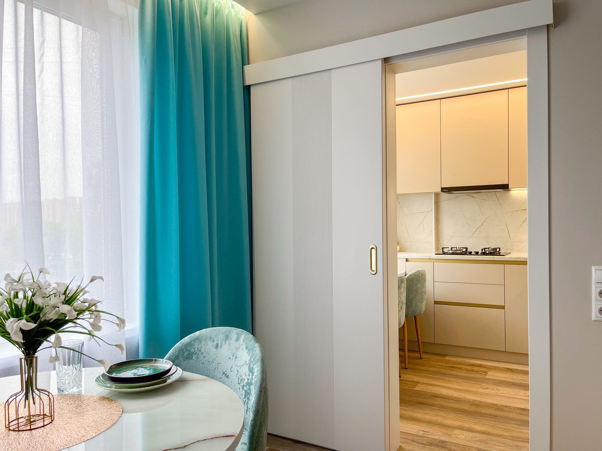 Планировка продумана до мелочей. много шкафов и мест хранения. Мебель делалась по индивидуальному эскизу, на заказ! Кровать с ортопедическим матрасом и подъемным механизмом. Раскладной диван. Дорогие отделочные материалы, плитка, премиальный кварцвинил на полу, которому не страшен даже потоп. Пол с подогревом в ванной. Приятный вид из окон. Большой застекленный балкона.