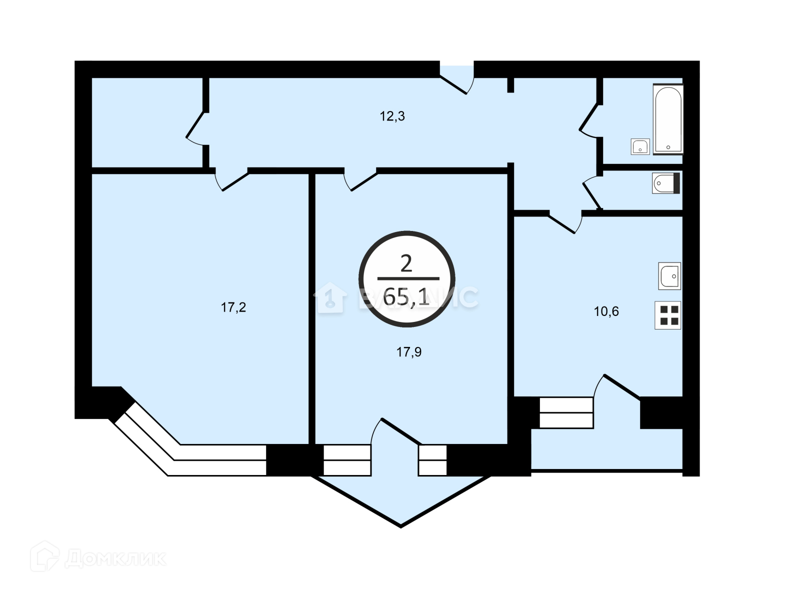Общая площадь 65.1 м2
