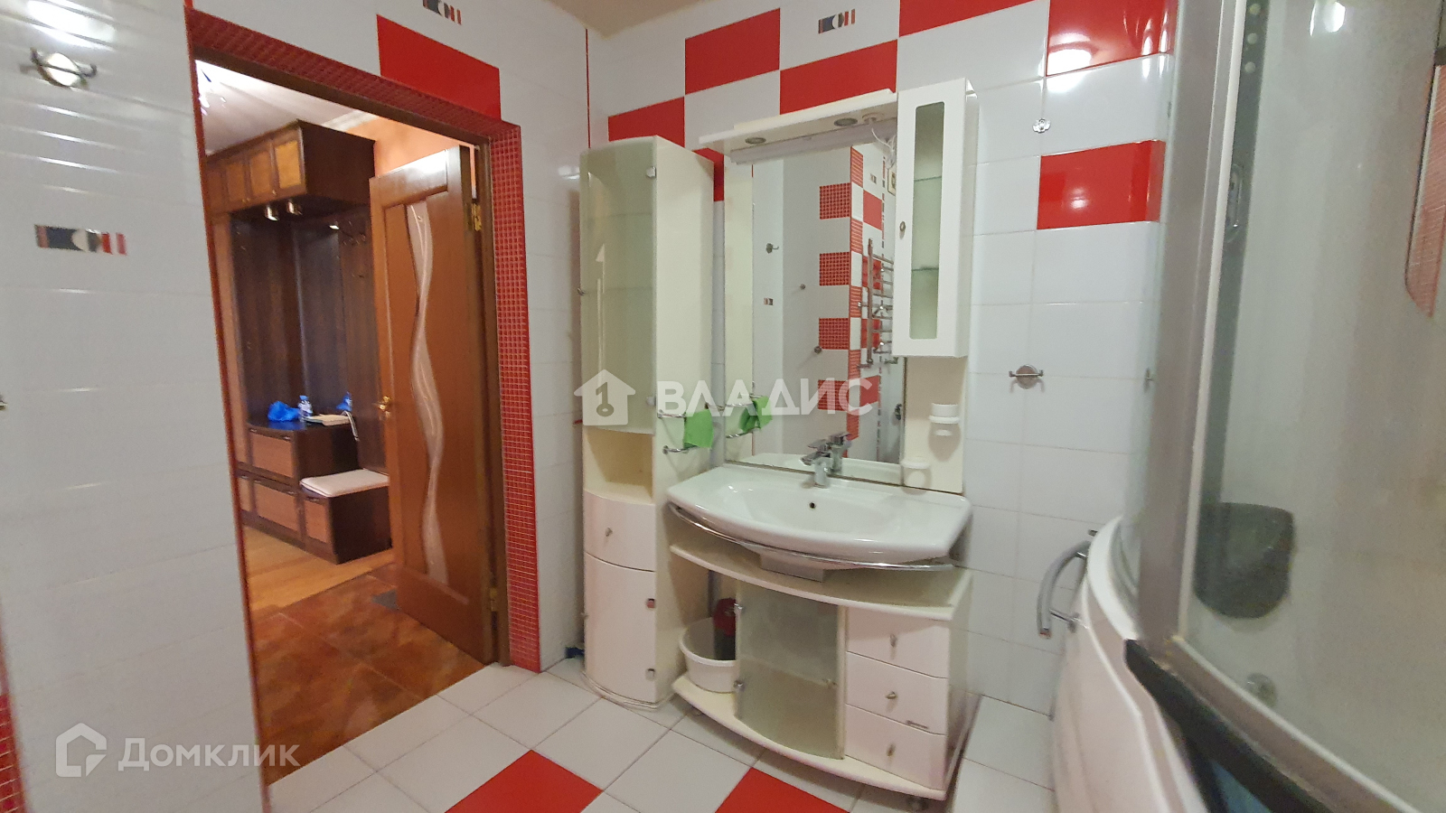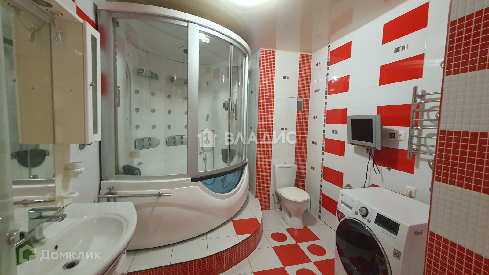 В ванной комнате стоит большая и удобная душевая кабина с возможностью принимать ванну.