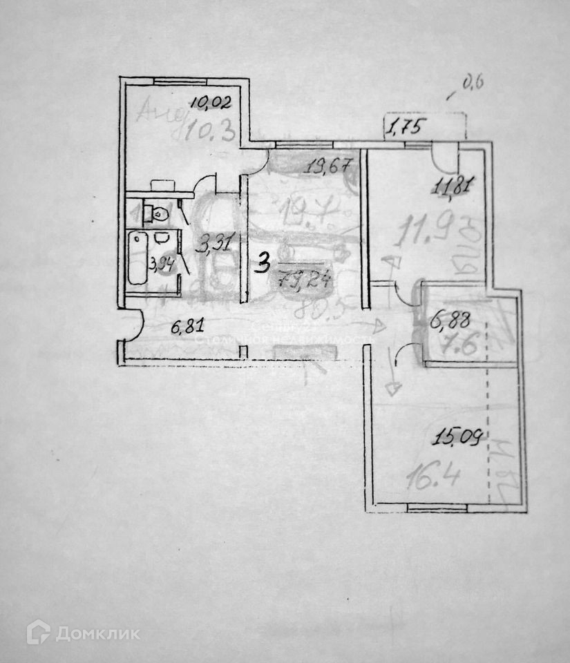 Арт. 65345333 Общая площадь квартиры 80,5 м2, жилая 48 м2, кухня 10 м2, есть 2 с/у.