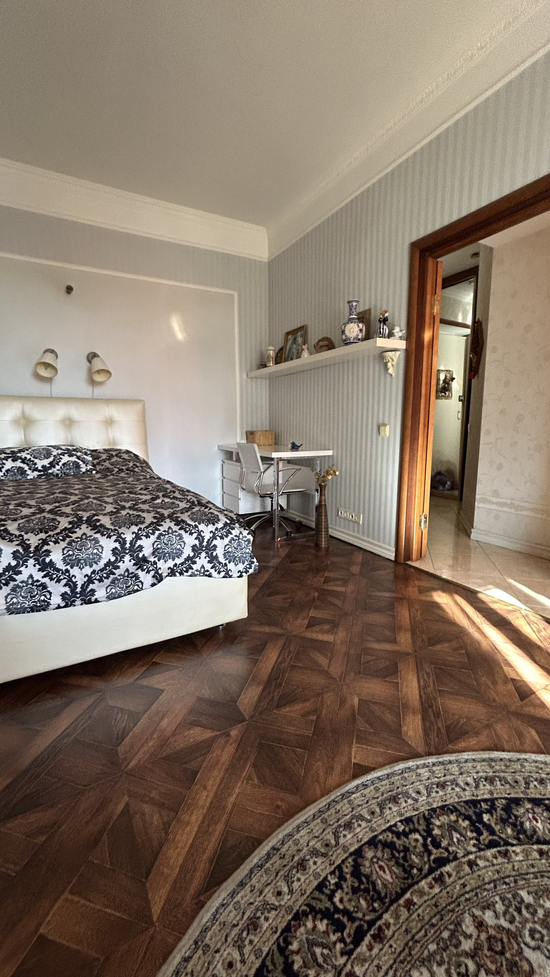 Квартира отличается продуманной планировкой, а дизайнерский ремонт подчёркивает эстетику сталинского архитектуры.