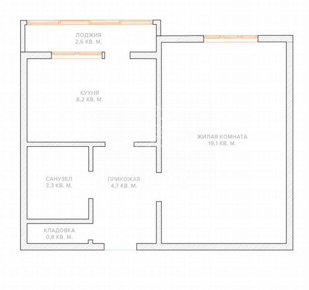 -комната 19,5 кв.м. , кухня  8.2 кв.м. - лоджия   2,7 кв.м.
