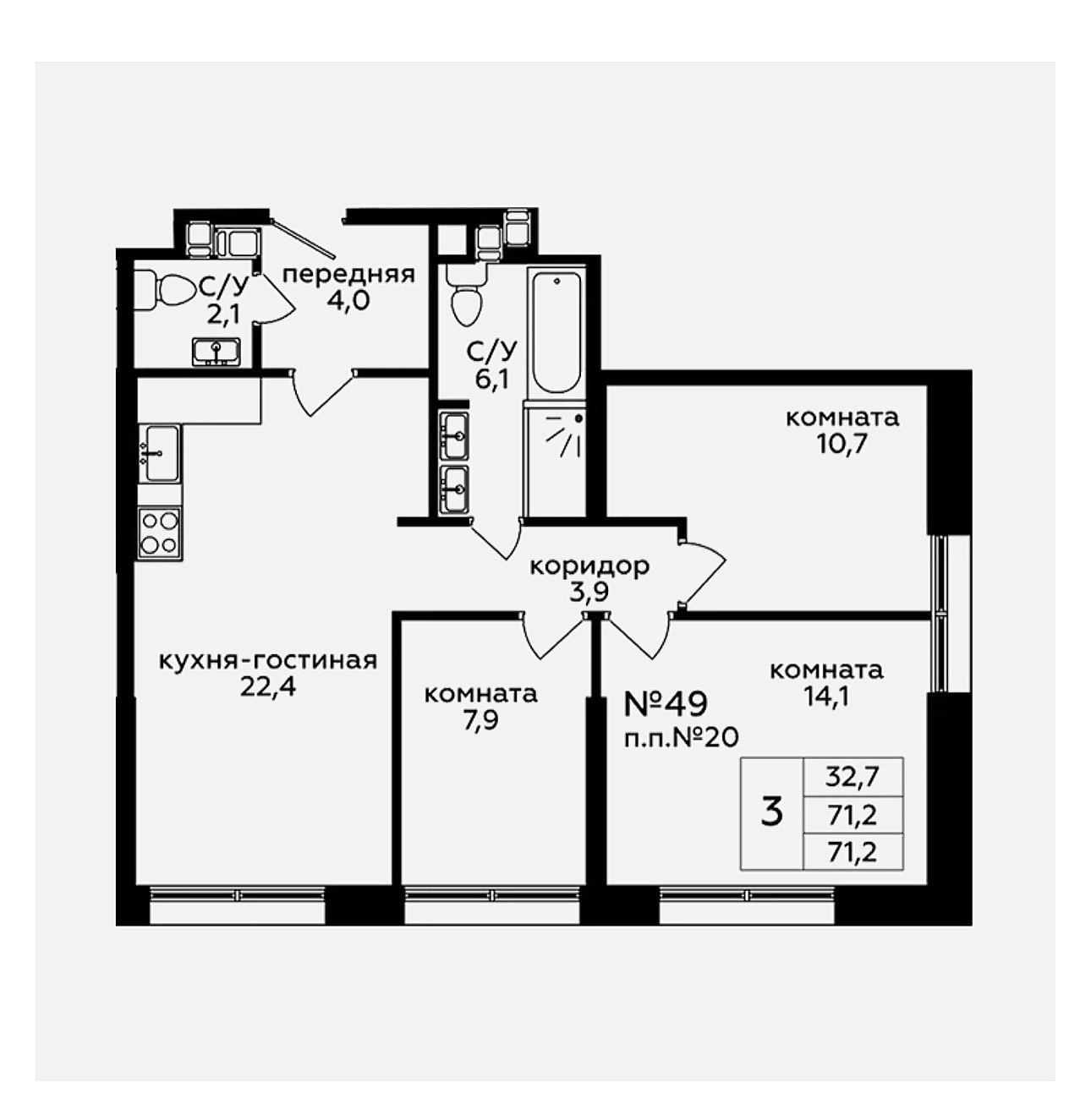 Общая площадь 71.1 м2