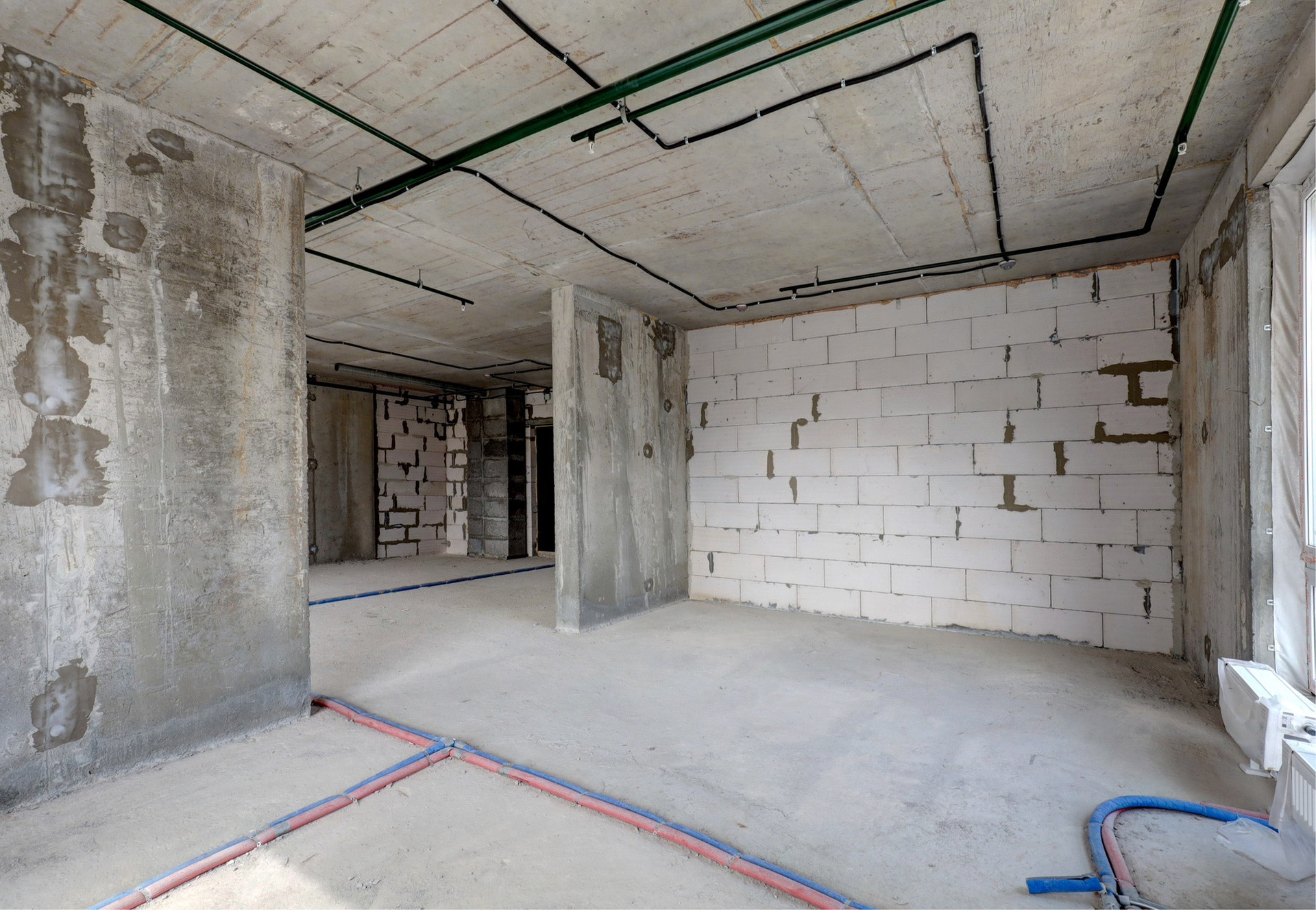 Метраж и планировка позволяют сделать как 2 спальни и большую кухню-гостиную, так и 3 спальни или 2 спальни , кухня - гостиная и кабинет.