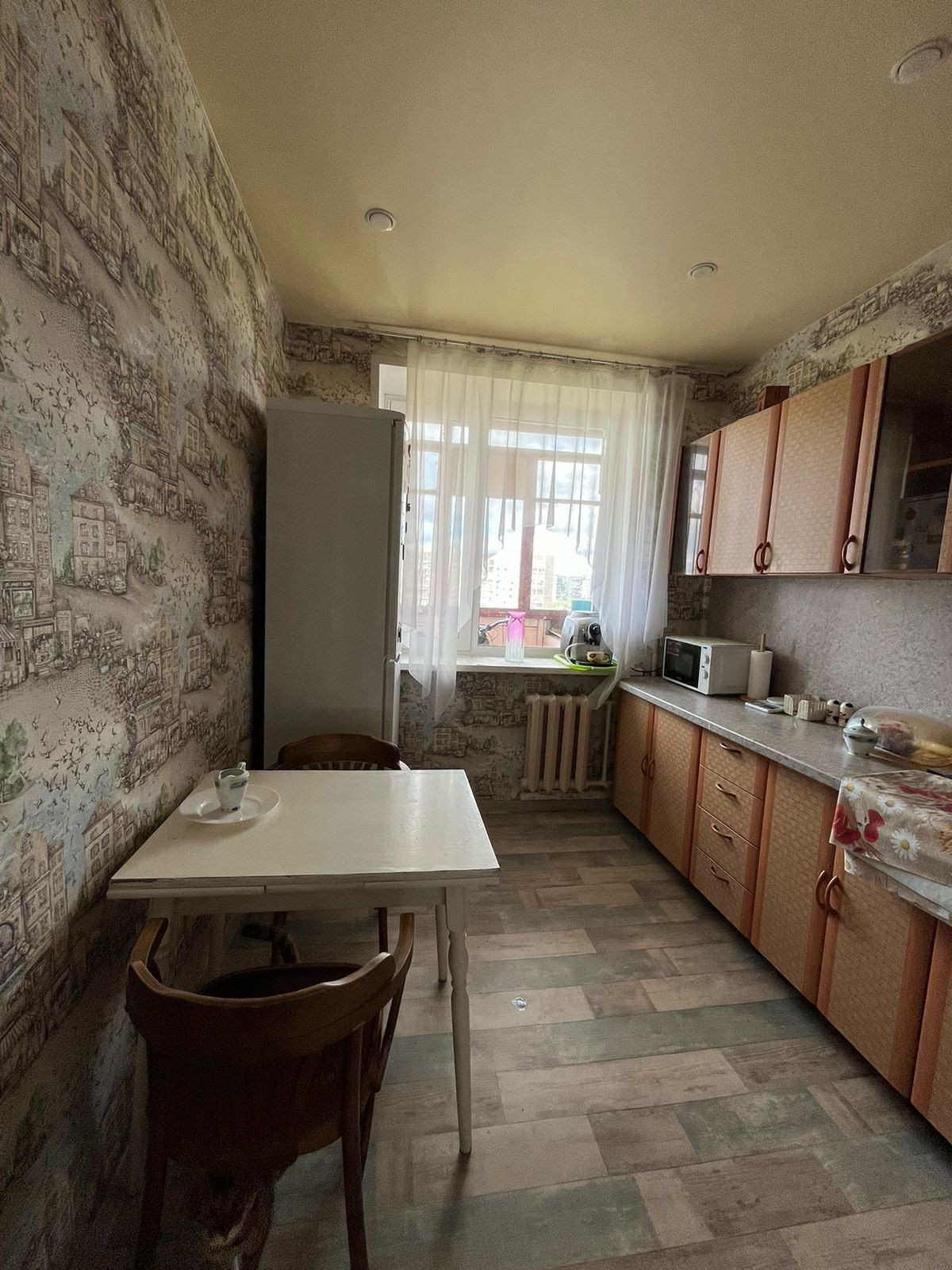В квартире при продаже оставляют: кухонный гарнитур, холодильник, кровать, кондиционер.