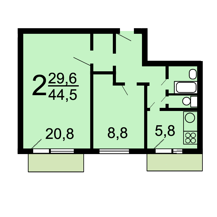Общая площадь 45 м2