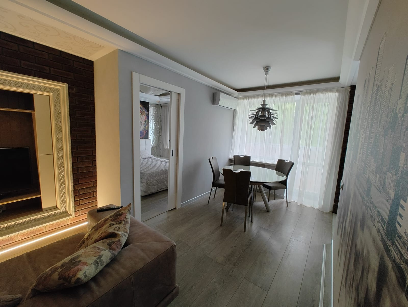 В комнатах установлены кондиционеры, остается вся мебель( Италия), санузел оборудован  качественной  сантехникой Villeroy Boch.
