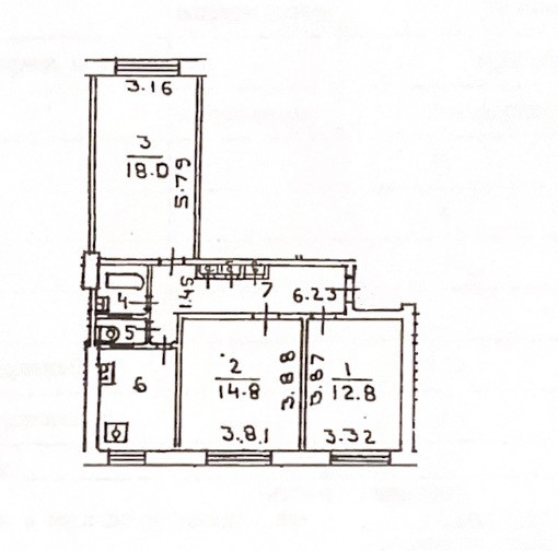 3-комнатная квартира, 66 м2, этаж 2 / 8, на продажу в Москве, Университетский проспект, 21к4