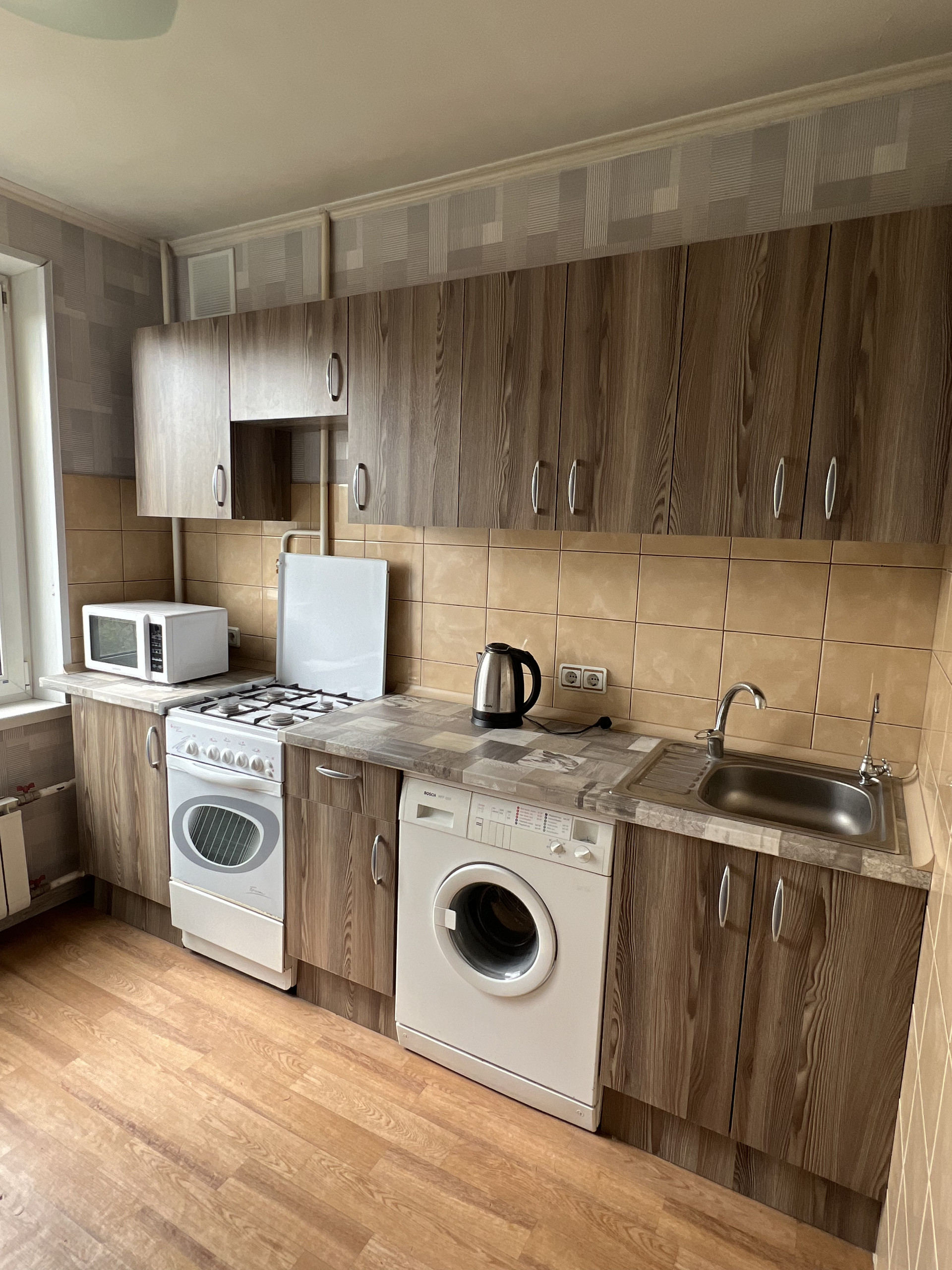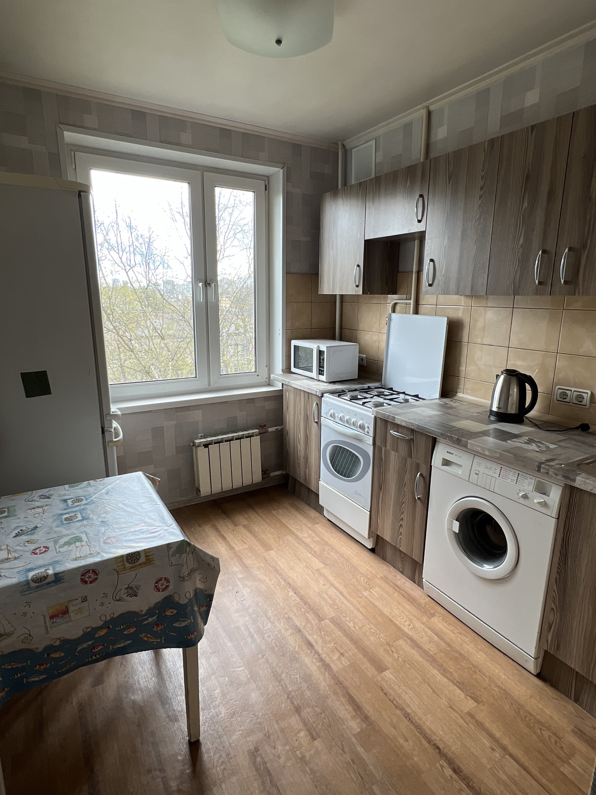 В квартире выполнен современный ремонт. Жилая комната оснащена необходимой мебелью, в том числе вместительным шкафом, кондиционером "Samsung", трехкамерными окнами. В ванной комнате работает система подогрева пола. На кухне новый гарнитур, стиральная машина, чайник, микроволновая печь, холодильник.  В квартиру поставлена новая железная дверь с качественными замками, а также есть возможность подключить систему сигнализации.
