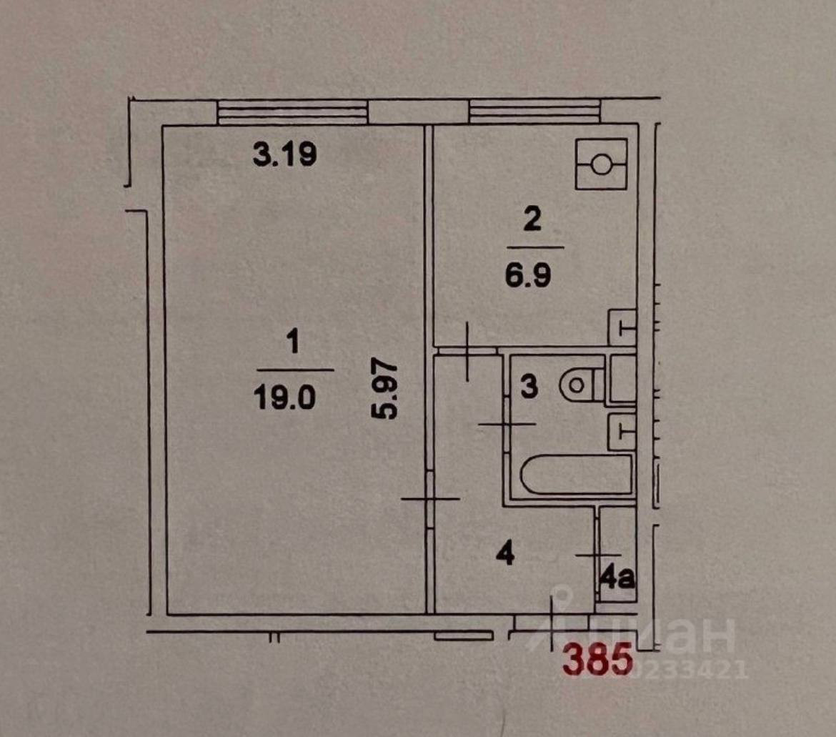 Жилая площадь 19 м2