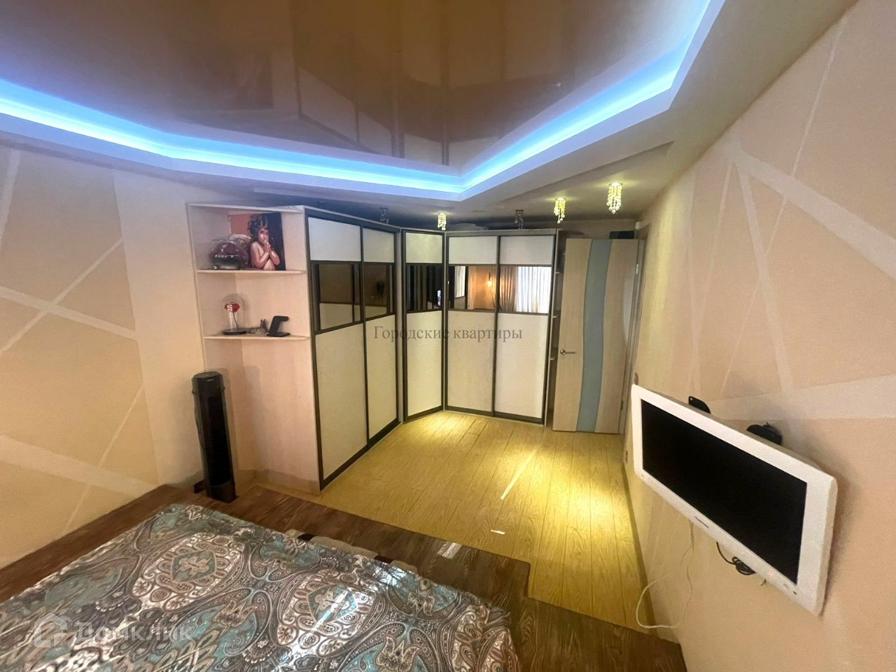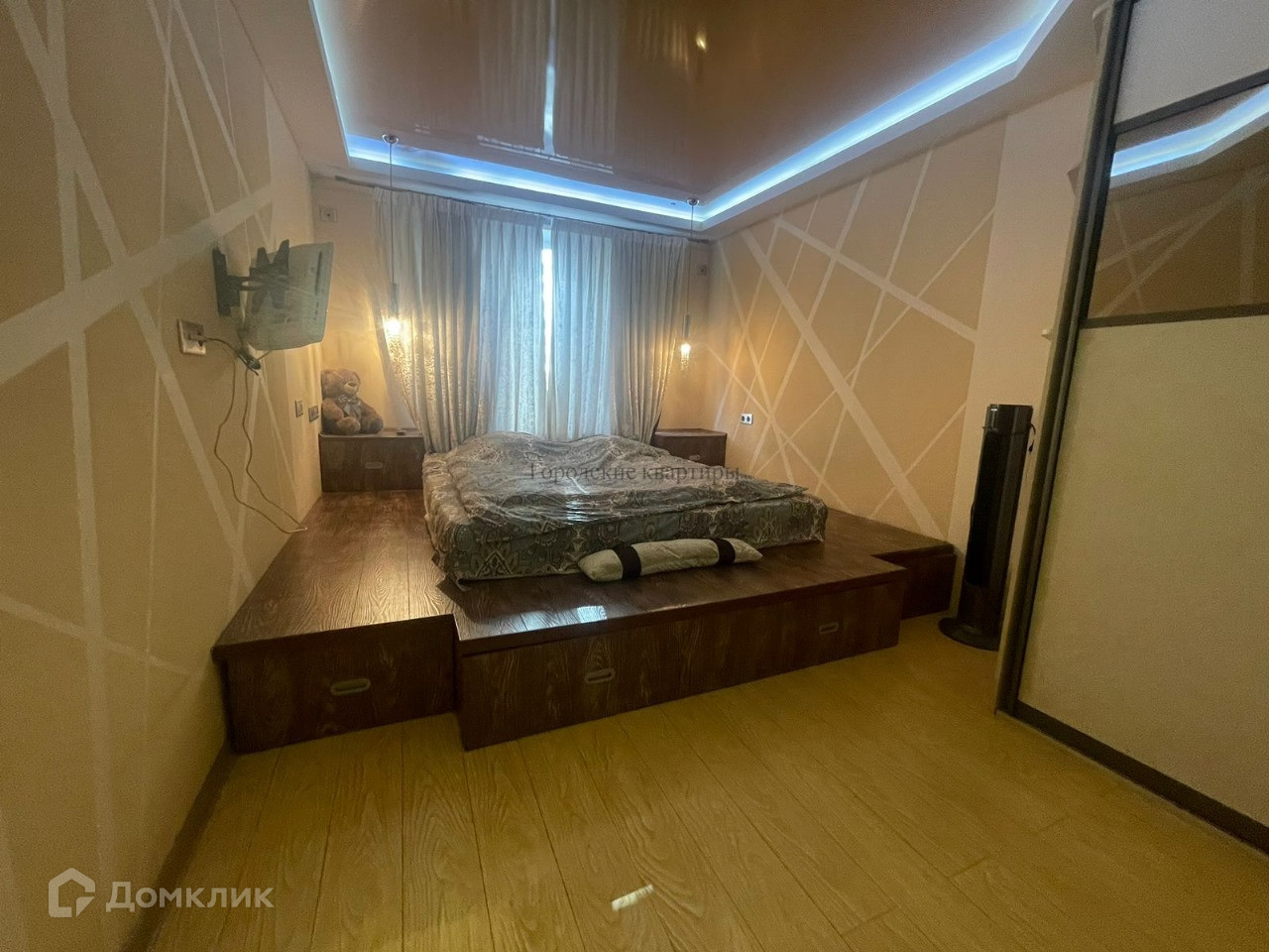 В квартире выполнен дизайнерский ремонт, установлена качественная мебель под заказ, как говорится заезжай и живи. В квартире остается все, что на фото, забирают только телевизор из гостиной. Балкона нет.