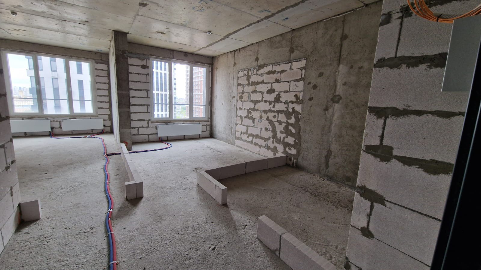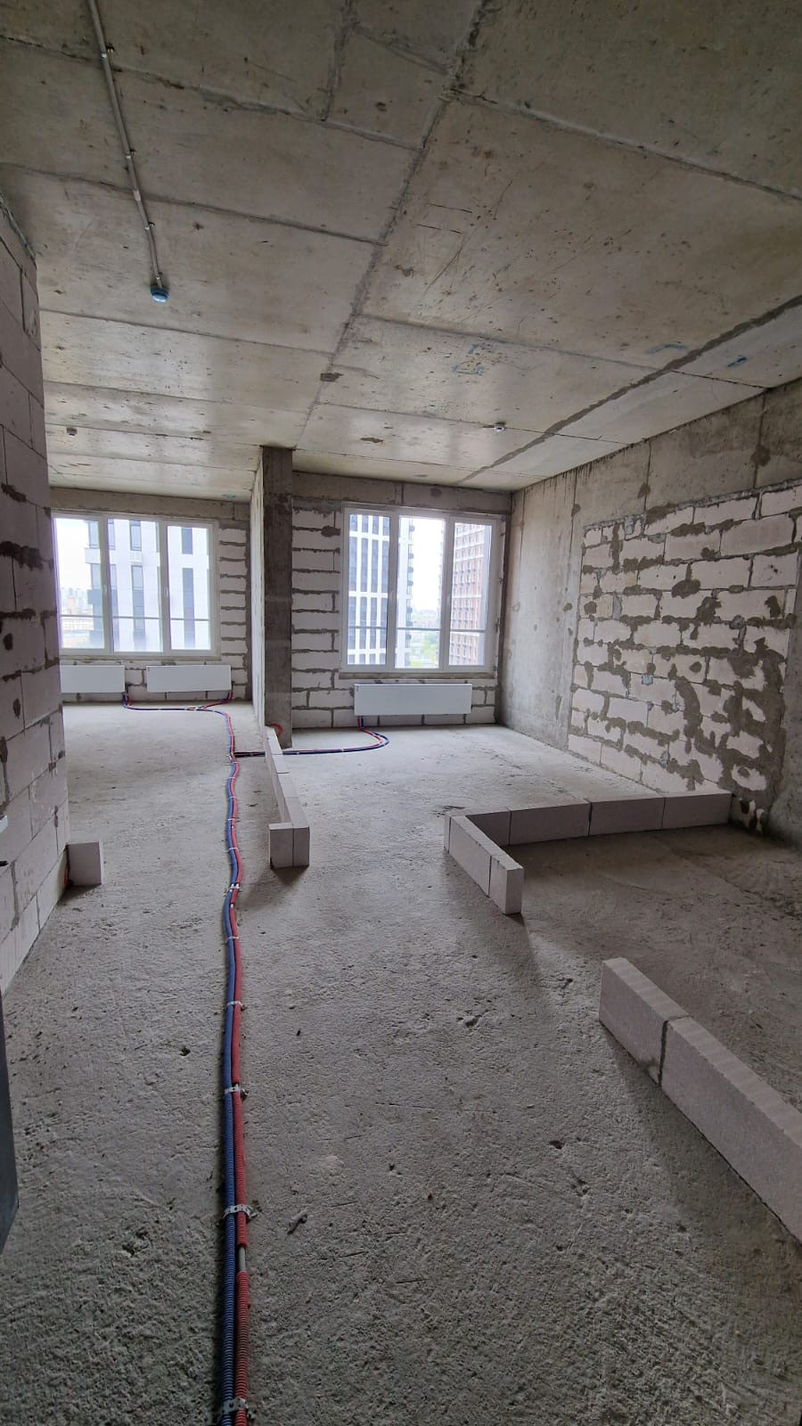 Квартира без отделки, установлены оконные стеклопакеты с шумоизоляцией, подведены коммуникации, есть счетчики. Высота потолка - 3,20 м.