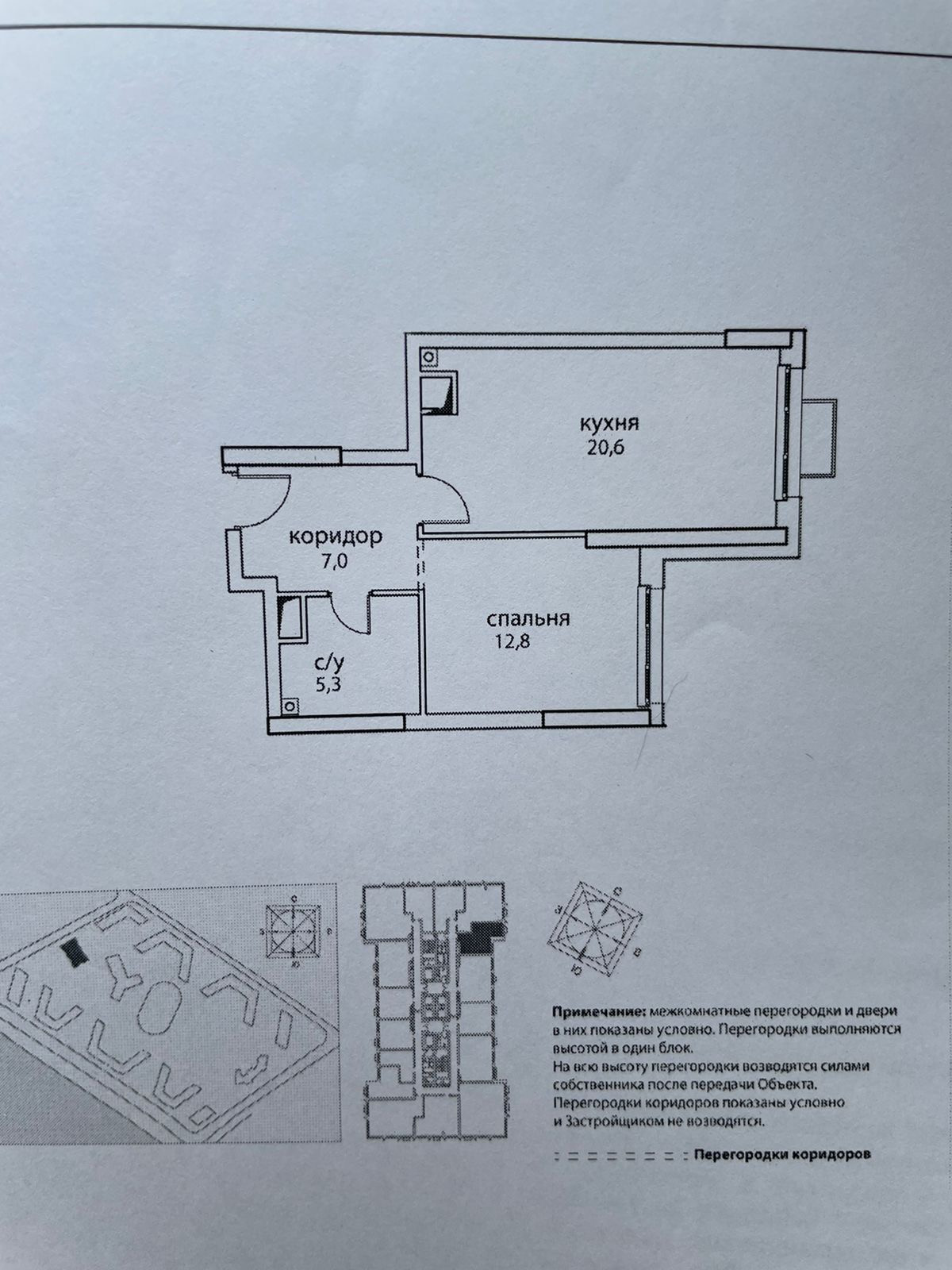 "Сердце Столицы" общей площадью 46,2м., кухня-гостиная 20,6м., спальня 12,8м.