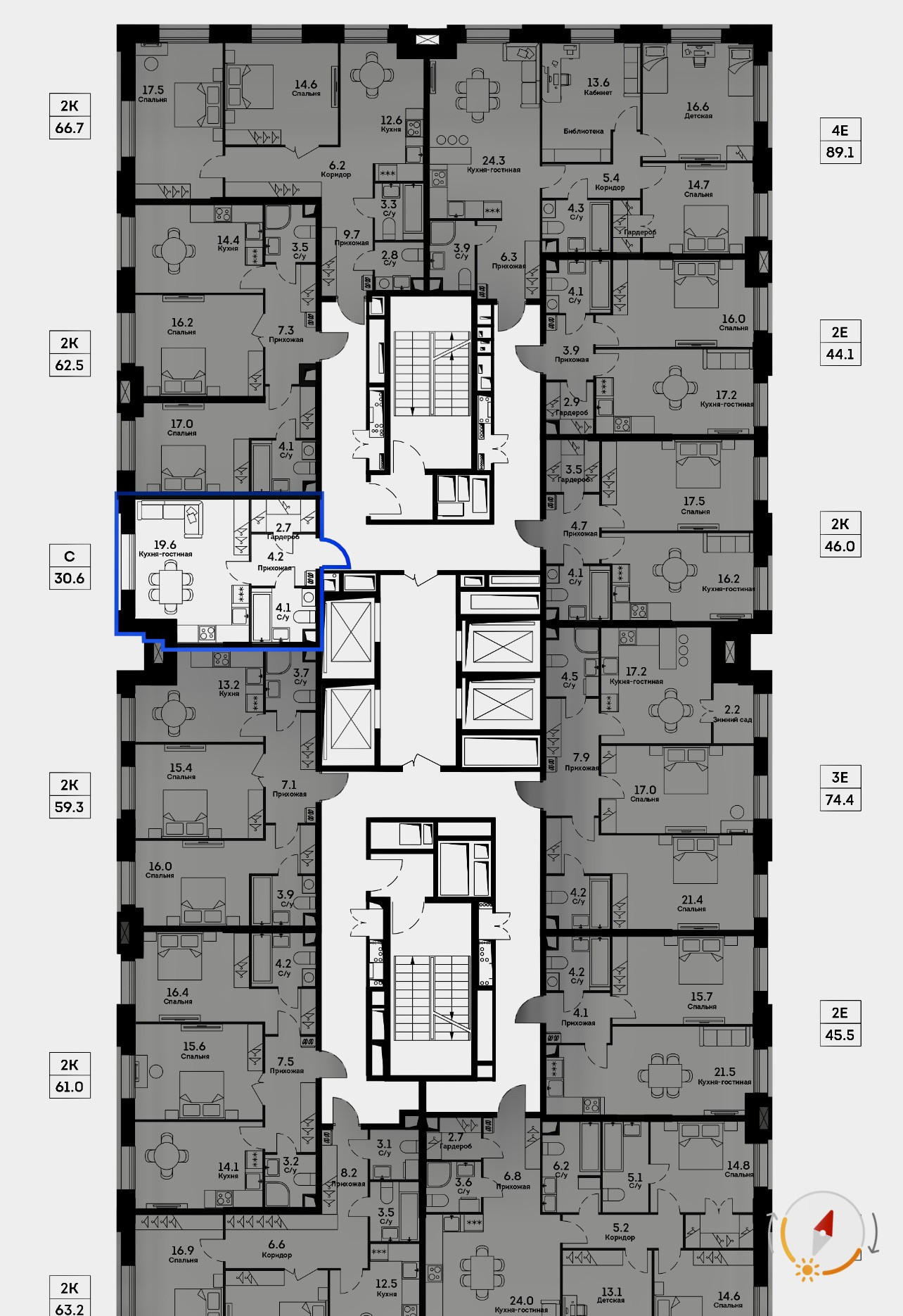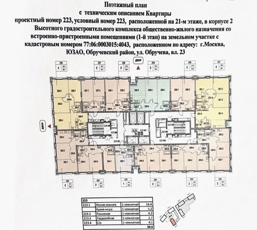 Видовая квартира: 2 корпус, секция 1, общая площадь 30.6 кв.м., видовой 21 этаж, студия, совмещенный санузел, большие окна, высокие потолки 3 метра, гардеробная комната.