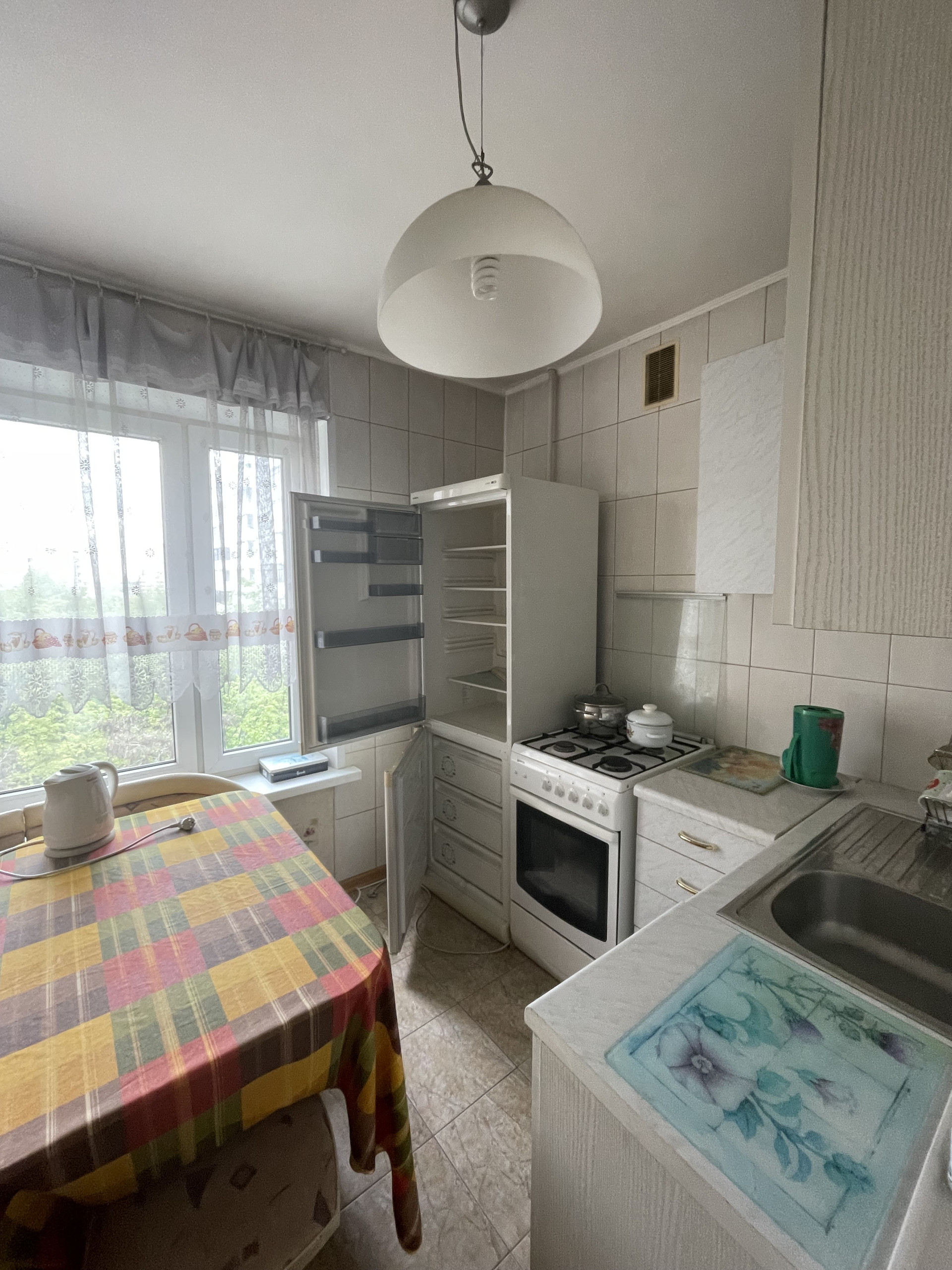 Остается почти вся мебель и техника, окна пластиковые, балкон застеклен, сан. узел в плитке состояние хорошее, полы ламинат.