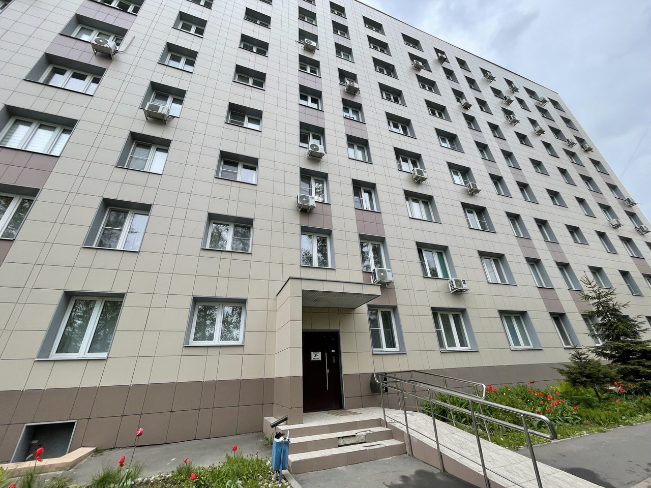 Современная входная группа, лифты. Полностью заменены все коммуникации, электропроводка, установлены новые стеклопакеты.
