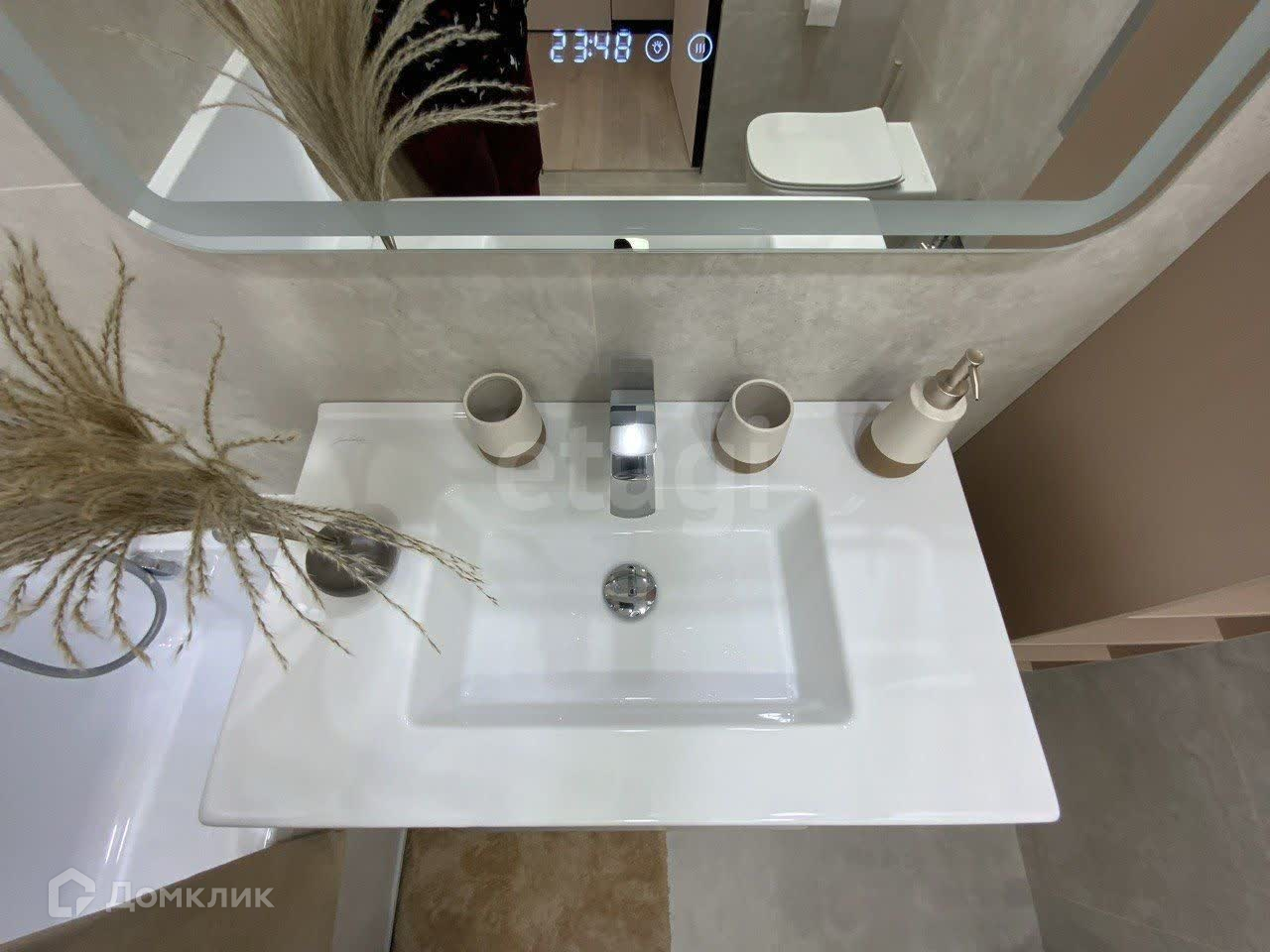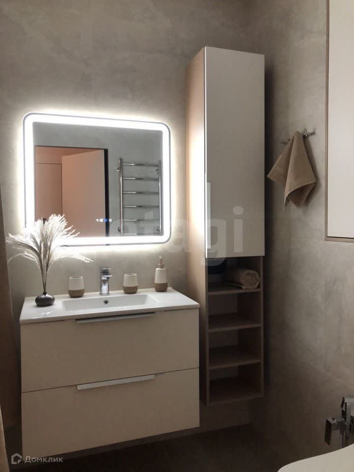 Ванна: оборудована многочисленными полками, как закрытыми, так и открытыми для ванных принадлежностей, широкая раковина, встроенный инсталлированный унитаз, гигиенический душ.