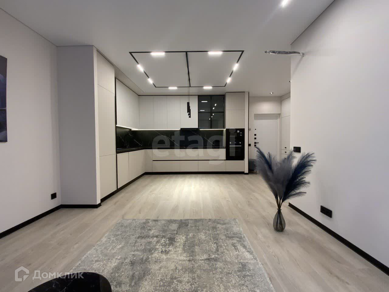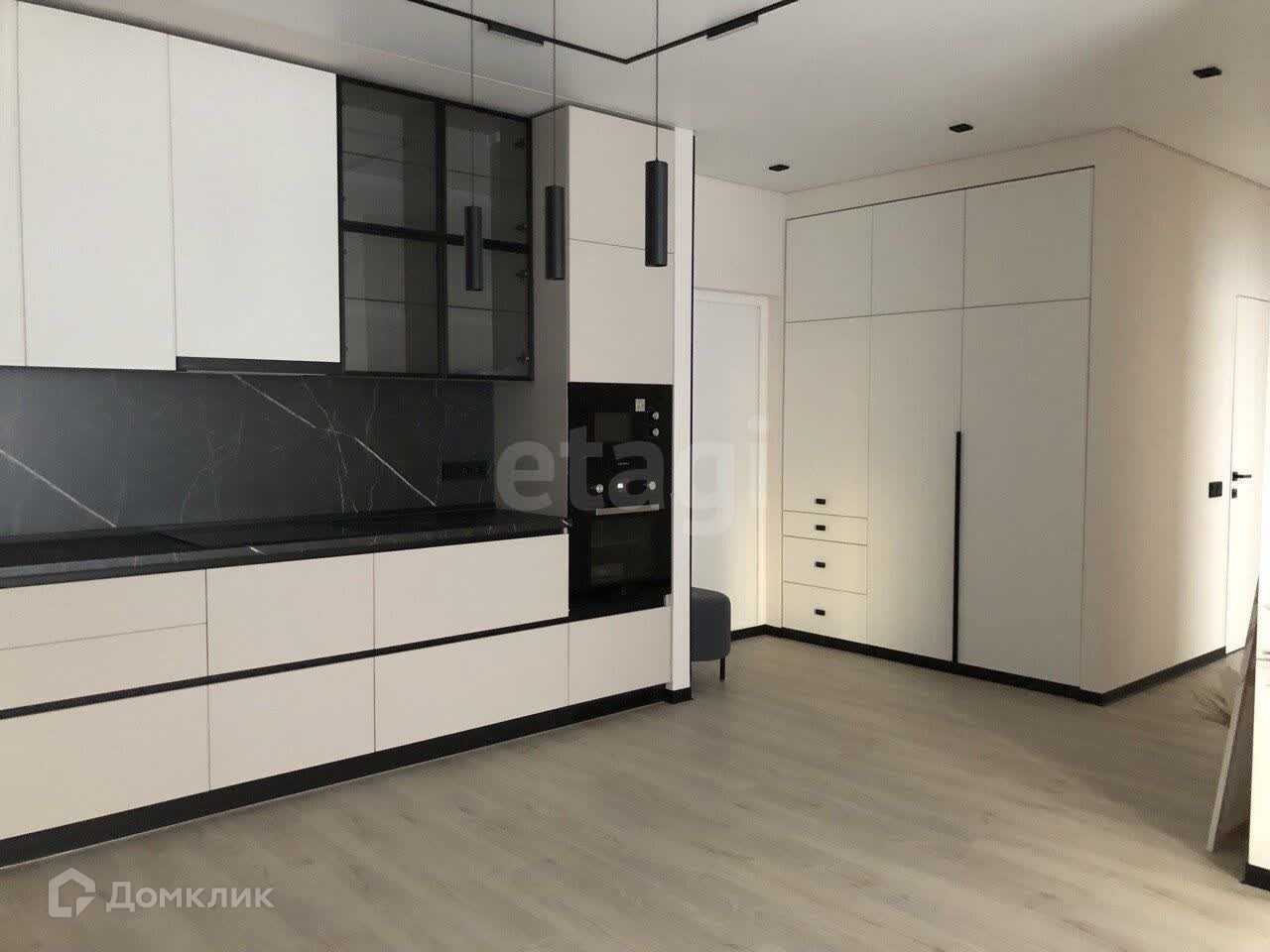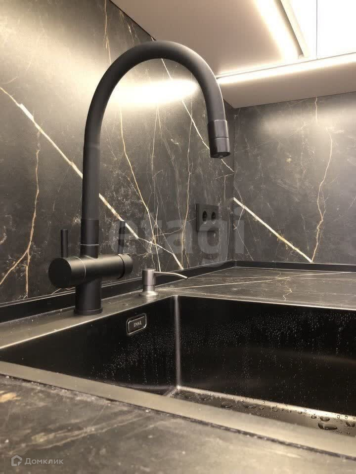 Кухонный гарнитур в современном стиле из современных материалов, с подключённой встроенной техникой (духовка, микроволновка, посудомоечная машина, холодильник, вытяжка, индукционная варочная поверхность, фильтры для питьевой воды), раскладывающийся диван со спальным местом 1600*2000 мм.
