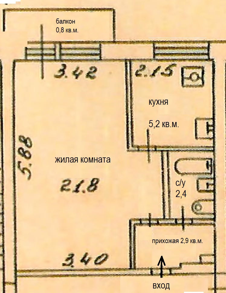 Жилая площадь 21.8 м2