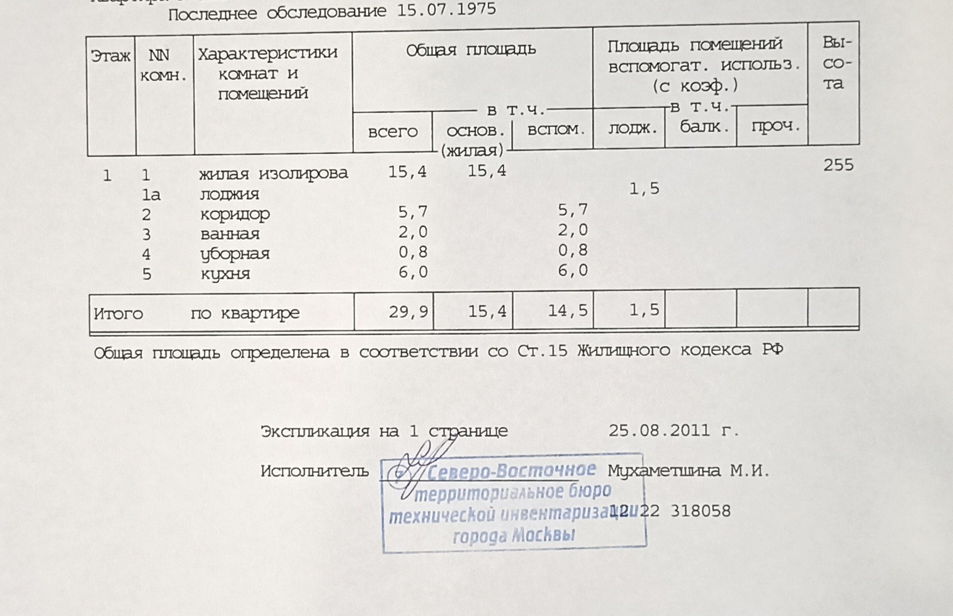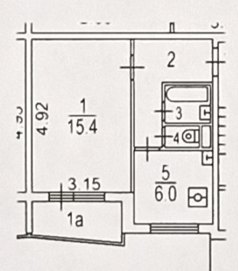 Жилая площадь 15.4 м2