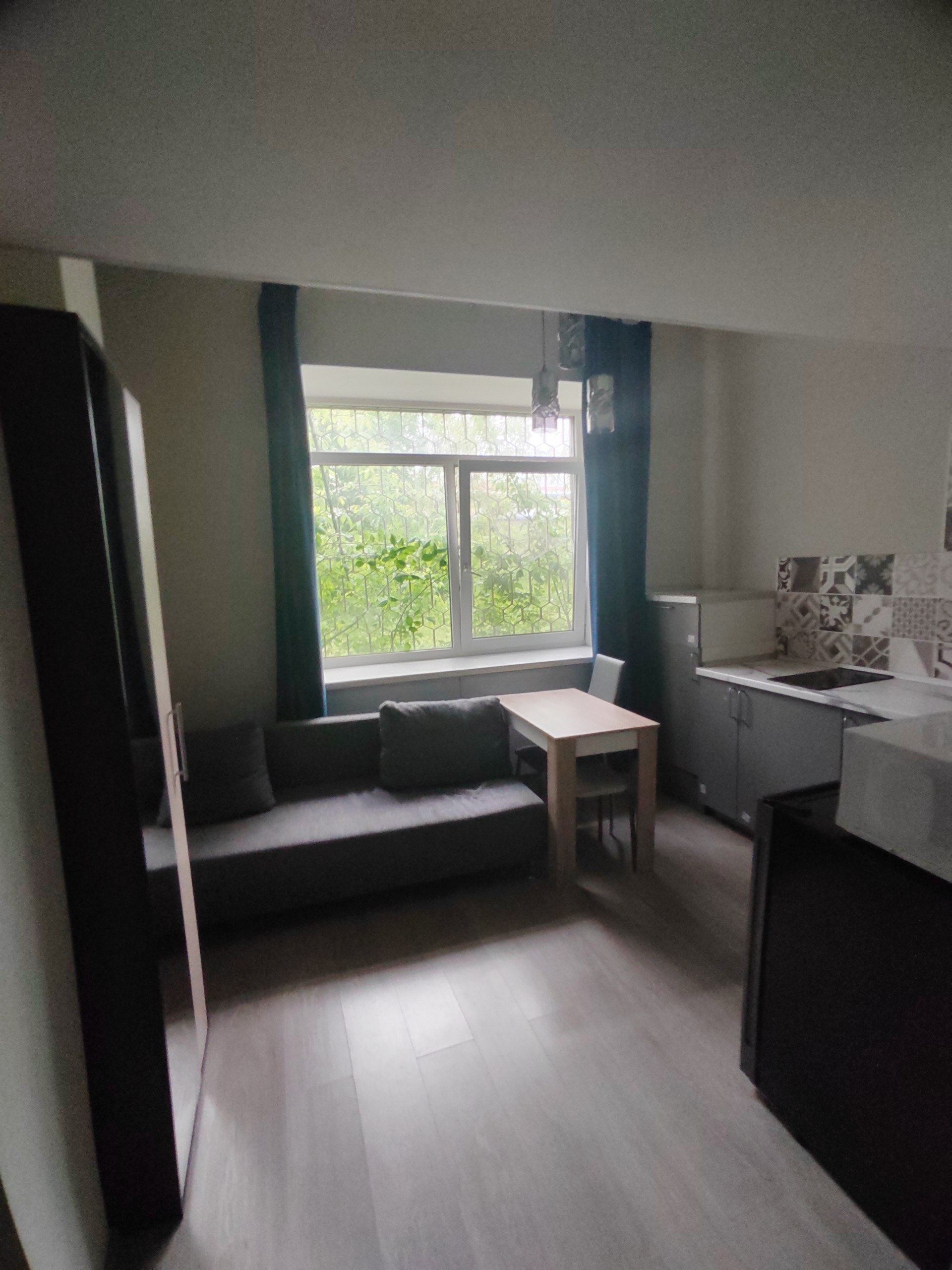 Это офисное здание переделанное под апартаменты, находится на охраняемой территории, вокруг аналогичные студии, все давно сделали ремонт и тут тихо.