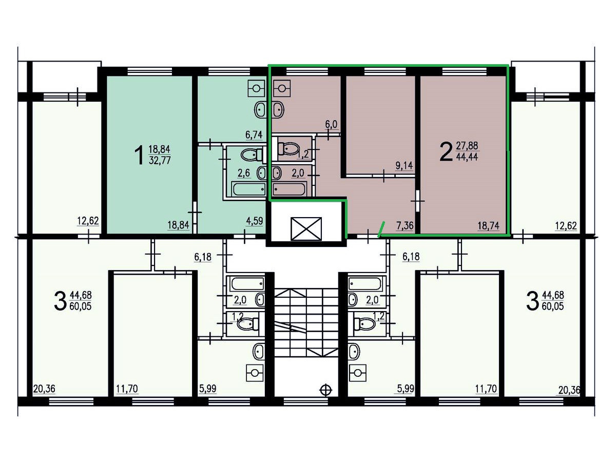 Общая площадь 44.5 м2